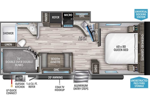 Have a look at this wonderful bunkhouse travel trailer! Compact in size but spacious and well-appointed, the Imagine XLS 23BHE offers double bunks, roomy bathroom with large shower, tons of storage, an outdoor kitchen and much, much more!