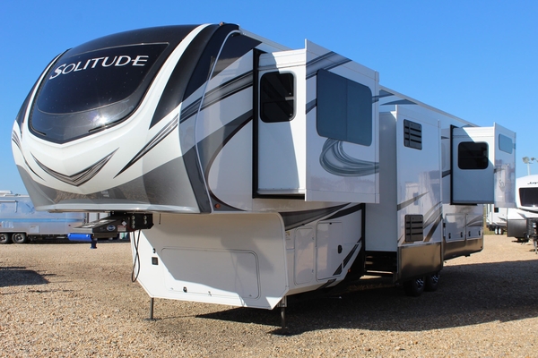Air Conditioning +Air Conditioning TypeAutomaticAwning +Awning Length (ft)22.5Number of Awnings2Power Retractable AwningBathroom +Bathroom Flooring TypeVinylBathroom LocationCenterNumber Of Bathrooms1Bathroom Medicine Cabinet +Bathroom Medicine Cabinet LocationCenterBathroom Mirror +Bathroom Mirror LocationCenterBathroom Sink +Bathroom Sink LocationCenterBathroom Vent / Fan System +Bathroom Vent / Fan System LocationCenterBattery +Battery Converter Amps55Battery Power ConverterBeds +Max Sleeping Count6Number Of Convertible / Sofa Beds2Number Of Queen Size Beds1Brakes +Front Brake TypeNot ApplicableRear Brake TypeElectric DrumConstruction +Body MaterialAluminumSidewall ConstructionFiberglassDimensions +Height (in)161Length (ft)37'11"Width (in)101Doors +Number of Doors1Emergency Exit(s) +Number Of Emergency Exits1Heater +Heater (BTUs)35000Heater TypeAutomaticHolding Tanks +Number Of Black Water Holding Tanks1Number Of Fresh Water Holding Tanks1Number Of Gray Water Holding Tanks1Total Black Water Tank Capacity (gal)50Total Fresh Water Tank Capacity (gal)93Total Gray Water Tank Capacity (gal)100Interior Decor +Interior Wood FinishWallpaperKitchen / Living Area +Kitchen / Living Area Flooring TypeVinylKitchen LocationCenterKitchen Table ConfigurationChairsLiving Area LocationFrontLeveling Jacks +Leveling Jack TypeFront Power / Rear PowerMaster Bedroom +Full Size Master Bedroom ClosetMaster Bedroom Door StyleConventional DoorMaster Bedroom Flooring TypeVinylMaster Bedroom LocationRearMaster Bedroom Mirror DoorsMaster Bedroom Shades / CurtainsMicrowave Oven +ConvectionOven / Stove +LayoutOven / StoveNumber Of Oven Burners4Oven Depth (in)24Overhead FanPrewiring +Air Conditioning PrewiringBack-Up CameraCable PrewiringHeat PrewiringSatellite PrewiringSolarTV Antenna PrewiringWasher / Dryer PrewiringPropane Tank(s) +Number Of Propane Tanks2Total Propane Tank Capacity (gal)14.2Radio +Brand NameRockfordNumber Of Radios1SatelliteRear Hitch +Rear Hitch TypeReceiverRecliners / Rockers +MaterialVinylNumber Of Recliner / Rockers2Refrigerator +Refrigerator Power ModeElectric / PropaneRefrigerator SizeFull-SizeShower +Door TypePlastic / GlassShower LocationCenterSlideouts +Number of Slideouts5Power Retractable SlideoutSofa +Number Of Sofas2Sofa MaterialVinylSpare Tire +Spare Tire LocationExterior MountedSpeakers +Speaker Location(s)Interior / ExteriorTelevision +Number Of Televisions2Tires +Rear Tire (Full Spec)17.5 Inch H Rated with NitroFillRear Tire Speed RatingHRear Wheel Diameter17.5Toilet +Toilet LocationCenterToilet TypePorcelainWater Heater Tank +Water Heater Pump Power ModeElectrical / PropaneWater Heater Tank BypassWater Heater Tank Capacity (g)12Weight +Dry Weight (lbs)14222GVWR (lbs)16800Hitch Weight (lbs)3096Payload Capacity (lbs)2578Wheels +Number Of Axles2Wheels CompositionAluminumWireless / Connectivity +Bluetooth® AudioMobile App Instrumentation