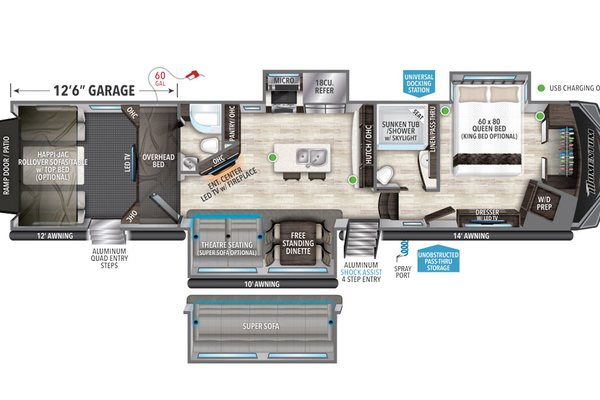Toy Hauler Fifth Wheel with 12-ft 6-in Garage
