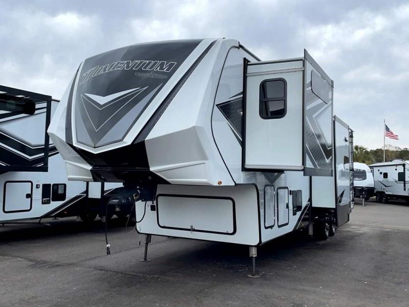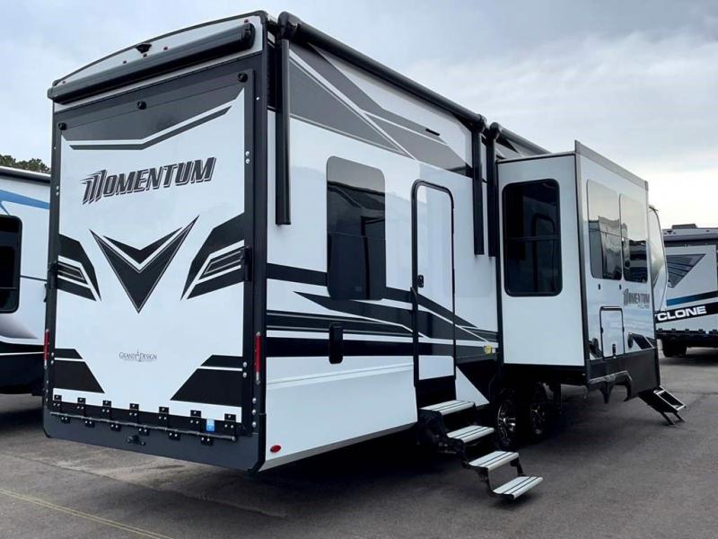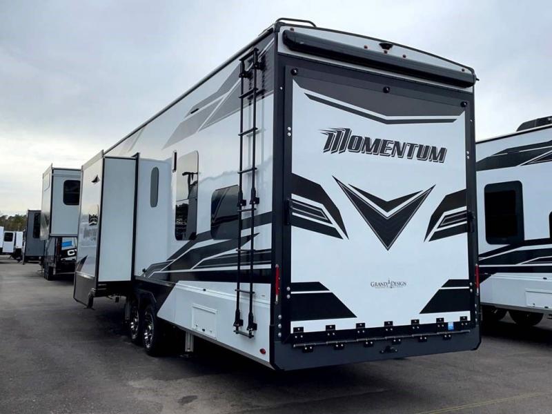 Our new Momentum M-CLASS Fifth Wheel Toy Haulers are lighter but are no lightweight when it comes to features. Inside and out, the Grand Design M-CLASS series has redefined the look and feel of the toy hauler. When it comes to elegant design and amenities, one word encapsulates it... "CLASS".
