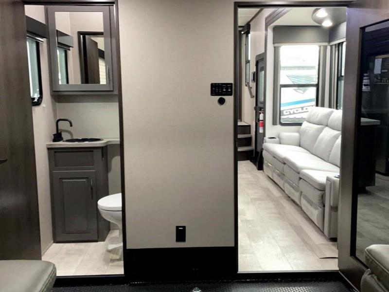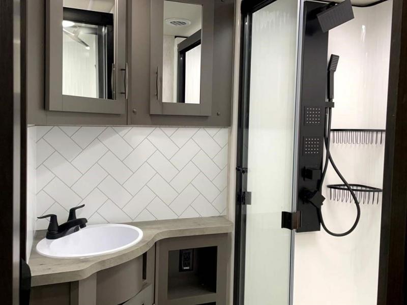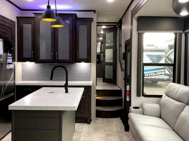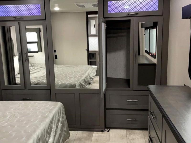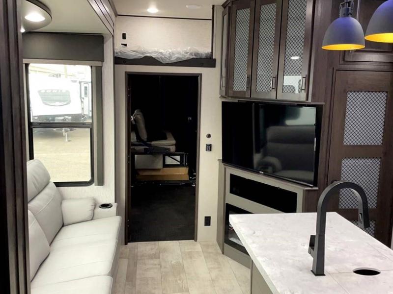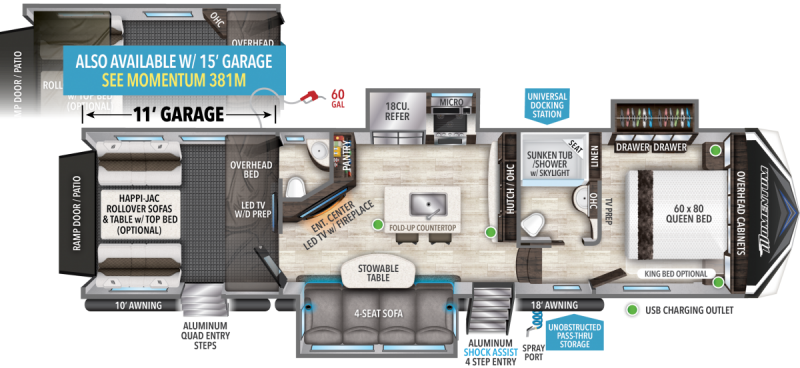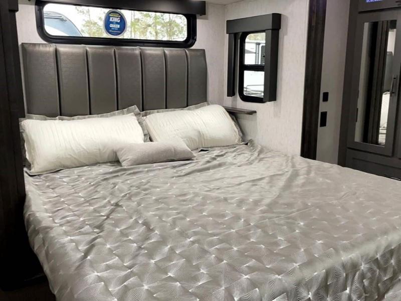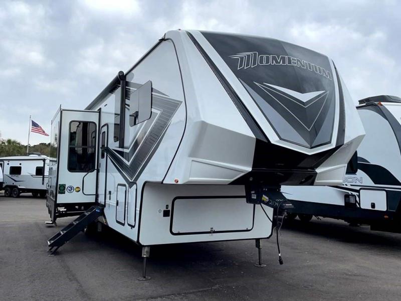 The Momentum Fifth Wheel Toy Hauler is the point where absolute luxury meets the mobile garage! We have completely raised the Toy Hauler bar by incorporating an elegant Master Bath and Master Suite (with a full walk-in closet) into this unit! But trust us, we didn't ignore the Living and Garage areas. Check out our 360 tours and get a feel for the extraordinary space we've created. We know you will agree with us when we say that "The Momentum RV is the place to live well and play hard!".