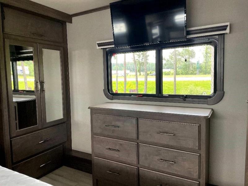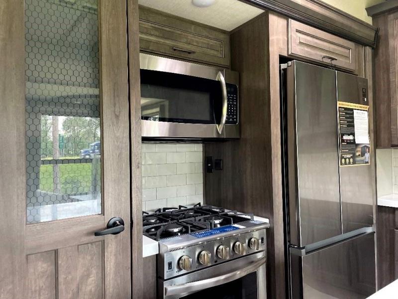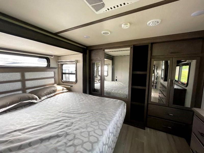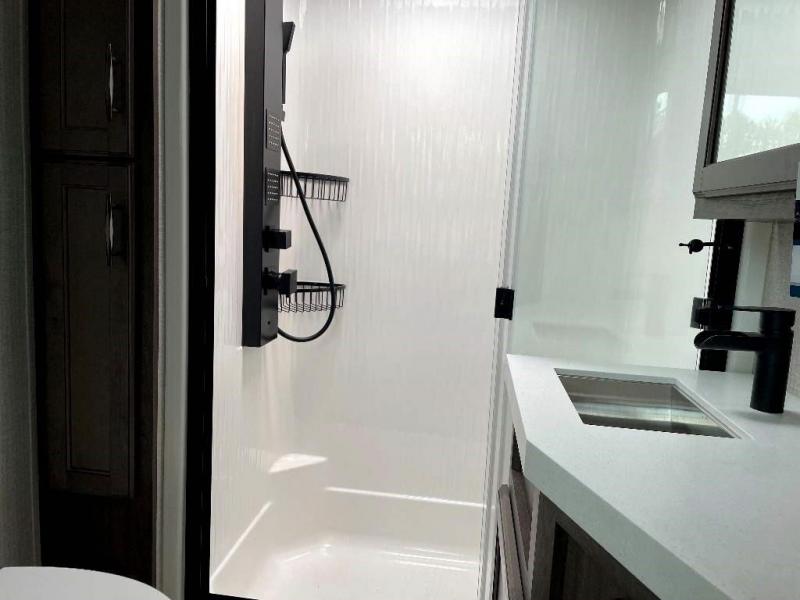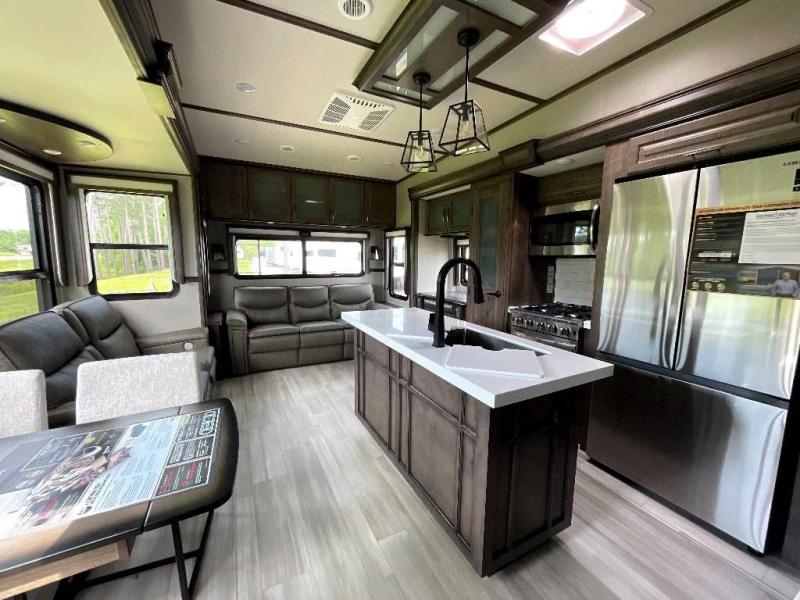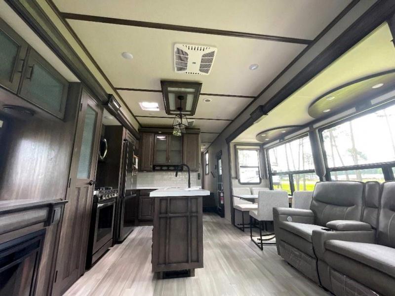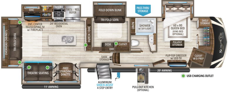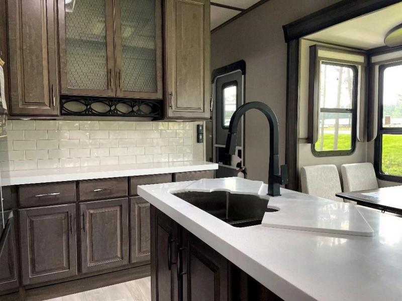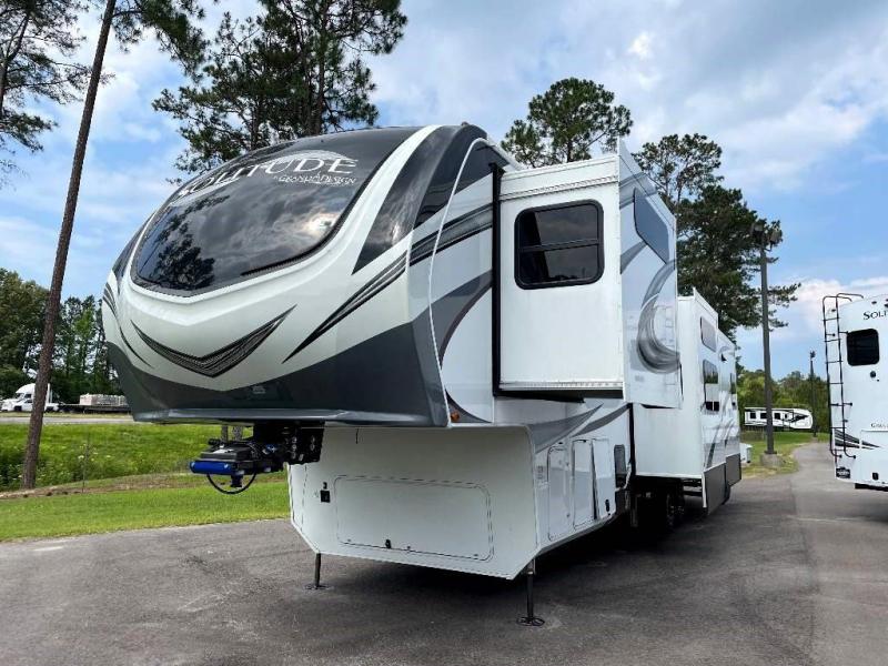 If more room is what you desire, Solitude is the most spacious Extended Stay Fifth Wheel ever built! The Solitude RV delivers taller ceilings, taller, deeper cabinets, larger scenic window areas, a full 6' 8" tall slideout, and a body width that measures a full 101 inches!