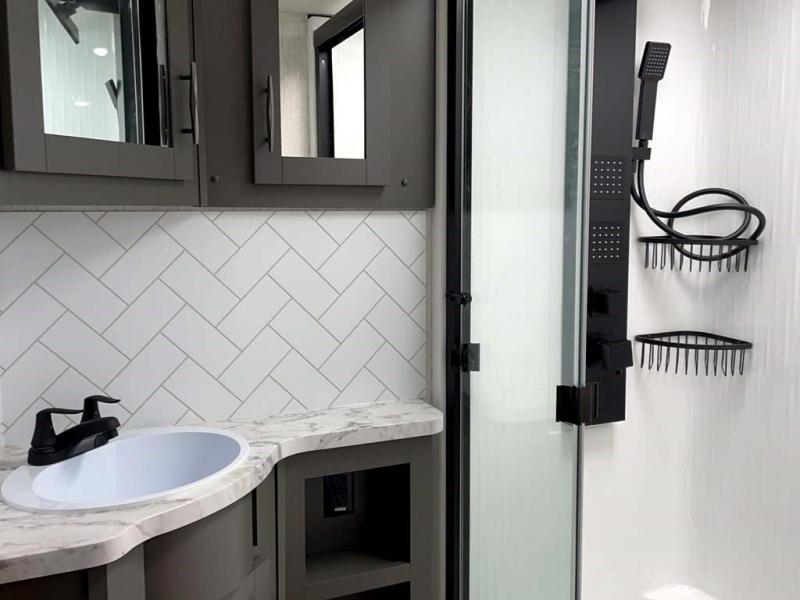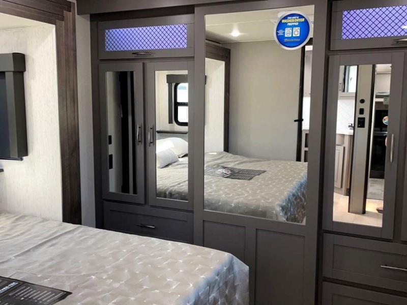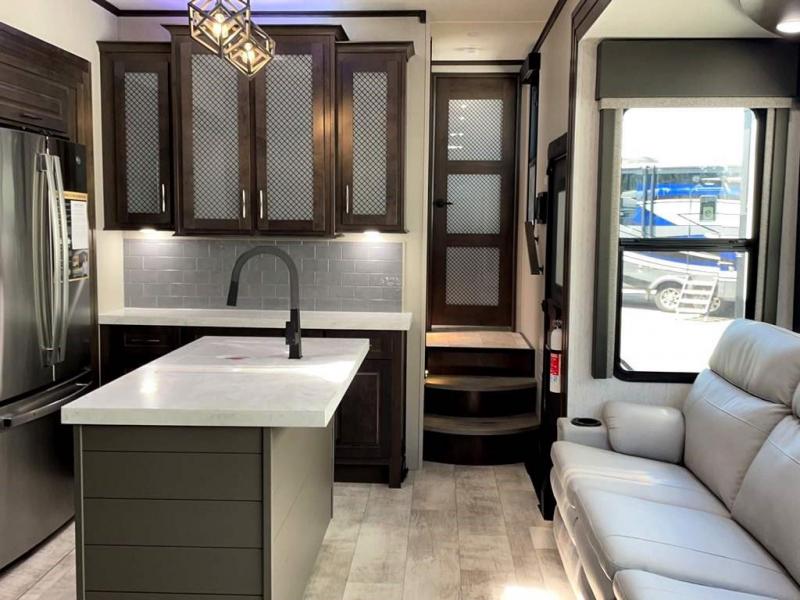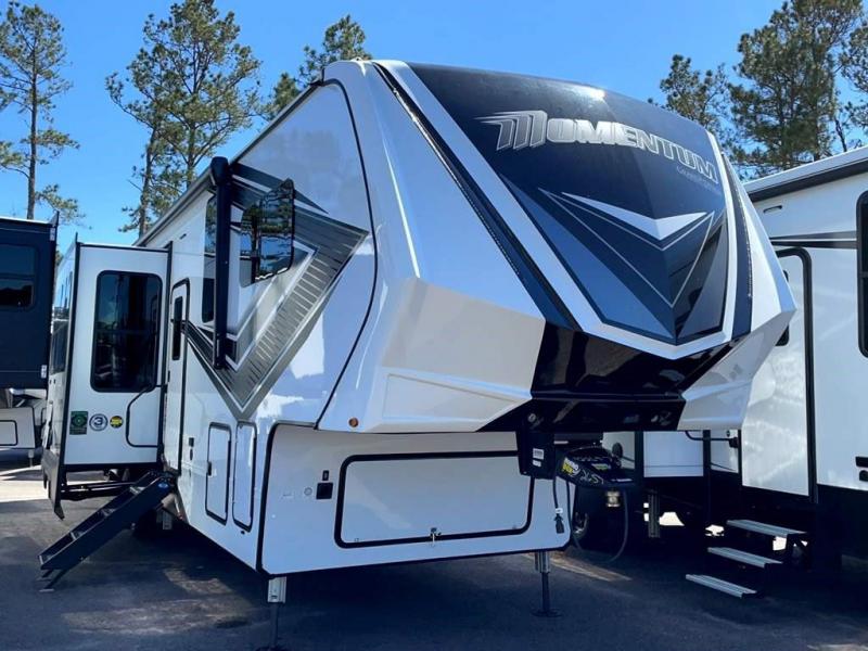 The Momentum Fifth Wheel Toy Hauler is the point where absolute luxury meets the mobile garage! We have completely raised the Toy Hauler bar by incorporating an elegant Master Bath and Master Suite (with a full walk-in closet) into this unit! But trust us, we didn't ignore the Living and Garage areas. Check out our 360 tours and get a feel for the extraordinary space we've created. We know you will agree with us when we say that "The Momentum RV is the place to live well and play hard!".