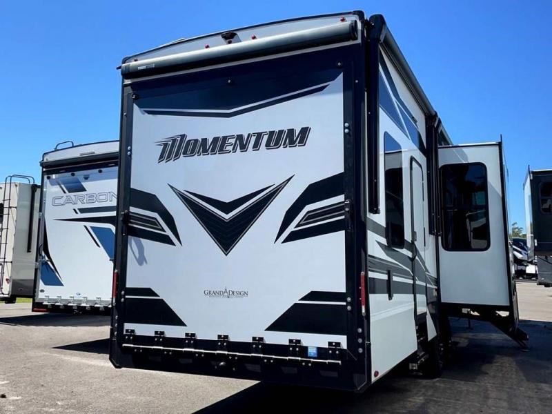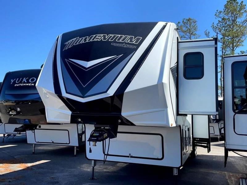 Our new Momentum M-CLASS Fifth Wheel Toy Haulers are lighter but are no lightweight when it comes to features. Inside and out, the Grand Design M-CLASS series has redefined the look and feel of the toy hauler. When it comes to elegant design and amenities, one word encapsulates it... "CLASS".