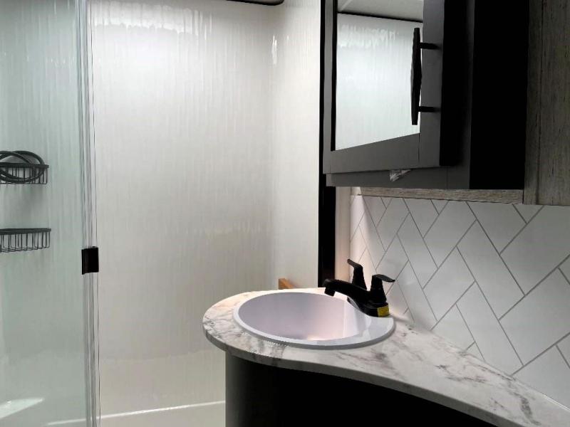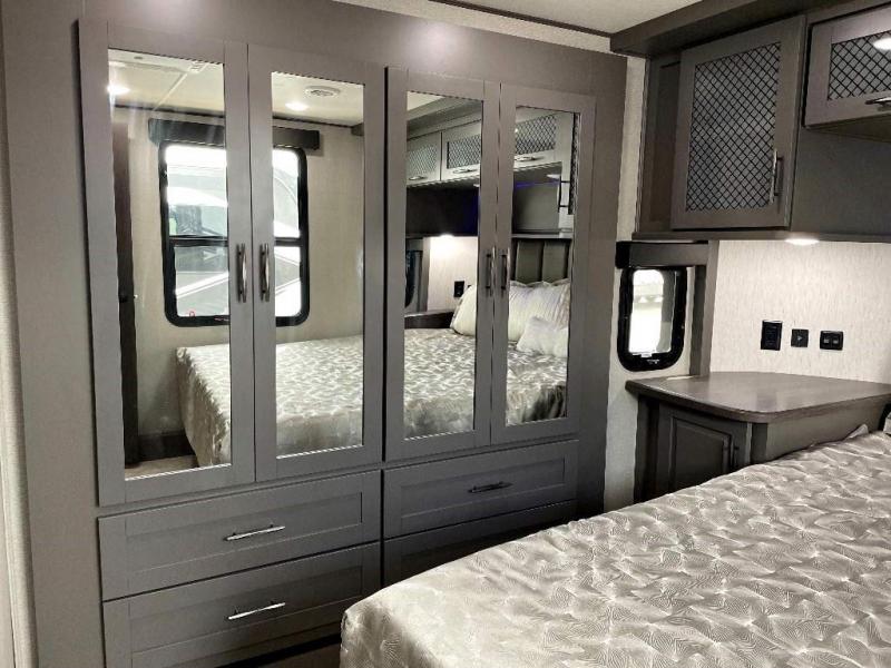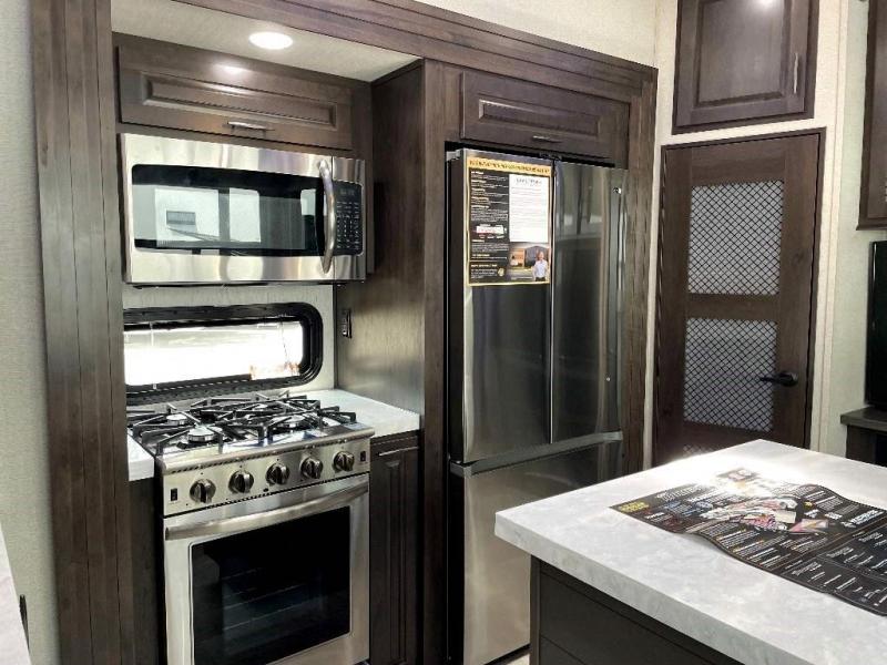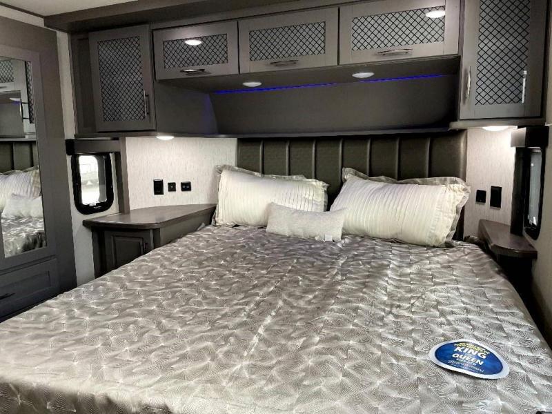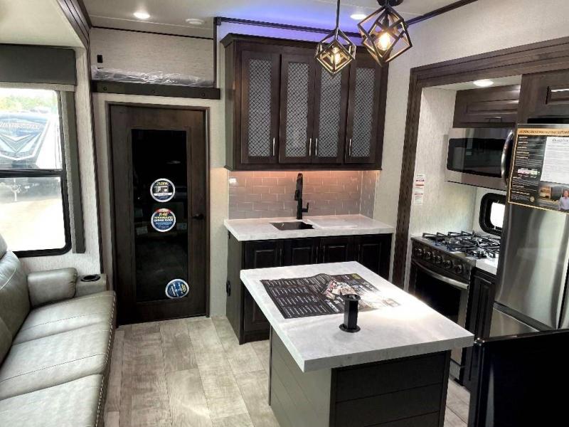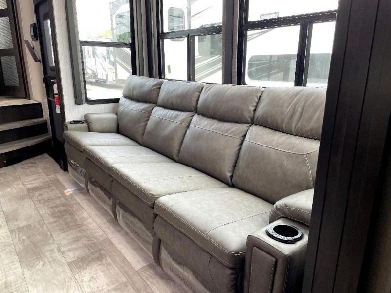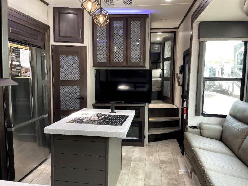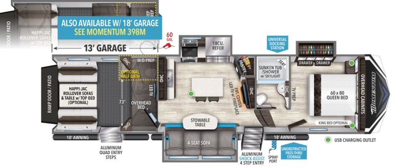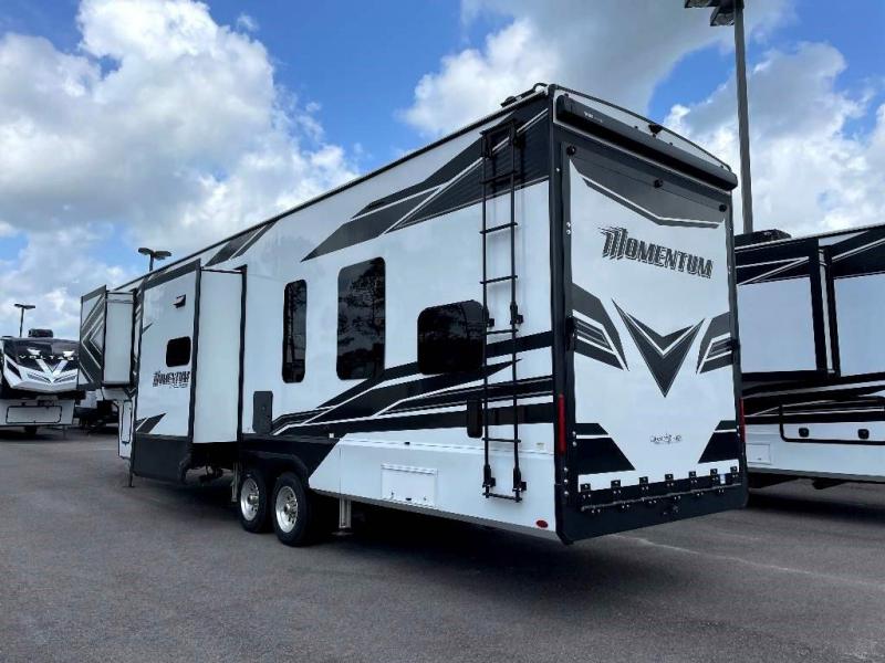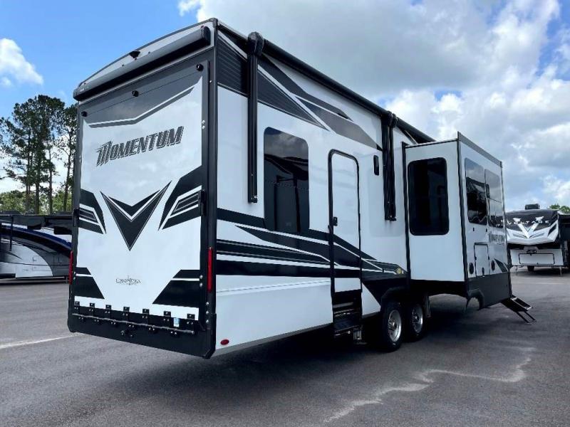 The Momentum Fifth Wheel Toy Hauler is the point where absolute luxury meets the mobile garage! We have completely raised the Toy Hauler bar by incorporating an elegant Master Bath and Master Suite (with a full walk-in closet) into this unit! But trust us, we didn't ignore the Living and Garage areas. Check out our 360 tours and get a feel for the extraordinary space we've created. We know you will agree with us when we say that "The Momentum RV is the place to live well and play hard!".