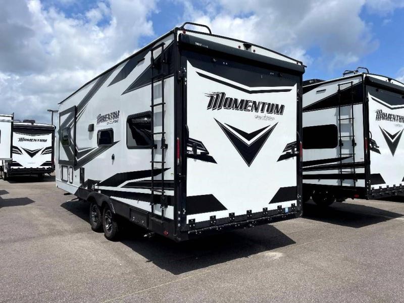 The public has spoken, and Grand Design has answered with the introduction of the all-new Momentum G-Class to its toy hauler lineup. The lighter G-Class series is built without surrendering any of the legendary quality, innovation, and functionality that our family of Momentum owners have come to love. Ceiling and slide-out heights still stand tall along with our wide-body platform to create a feeling of spaciousness.