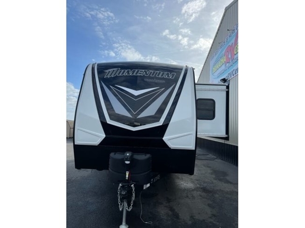 2023 Momentum by Gland Design Model 23G Travel Trailer Toy Hauler. Folks, this is a fantastic floorplan! It sleeps 6 people, has great options, and a slide out. In the front of the unit you will find the master bedroom as well as the slide that houses a walk around king bed. Next you will find a walk through bath with a shower. Centrally located are the living and kitchen areas. In the rear of the unit is the garage as well as two power drop down beds. The lower bed makes a booth dinette. Options and equipment for this unit include ducted roof a/c, microwave, full oven, large double door refrigerator/freezer, flat screen TV, am/fm stereo, surround sound speakers, power awning with LED lights, outside speakers, stabilizer jacks, power tongue jack, rear patio ramp door and MORE!! THIS IS A MUST SEE FAMILY TRAILER!! WE WANT YOUR BUSINESS FOLKS!! WE TAKE ALL TYPES OF TRADES!! WE CAN PROVIDE FAST AND EASY FINANCING!! LET'S DEAL!!!!!!!! CALL OR EMAIL NOW!!