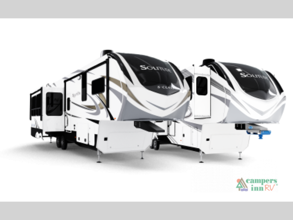 Each Solitude fifth wheel by Grand Design features a 101" wide-body construction, heavy duty 7,000 lb. axles, frameless tinted windows, and high-gloss gel coat sidewalls. You can camp year around thanks to the Weather-Tek Package that includes a 35K BTU high-capacity furnace, an all-in-one enclosed and heated utility center, and a fully enclosed underbelly with heated tanks and storage. Inside, you'll love the premium roller shades, hardwood cabinet doors, solid surface countertops and sinks, plus residential finishes throughout to make you truly feel at home. Each model also includes a MORryde CRE3000 suspension system, self adjusting brakes, and a MORryde pin box that will provide smooth towing from home to campground. Affordable luxury is possible with the Solitude fifth wheels; choose yours today!