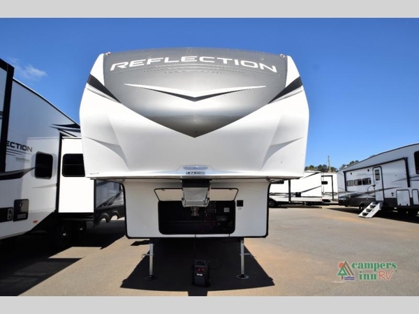 With any Reflection 150 Series fifth wheel by Grand Design, there is more available payload capacity and a broader range of half-ton trucks capable of towing this fifth wheel, and no slider hitch is needed thanks to the 90-degree turning radius which makes them short bed friendly and easier to tow. The mandatory Ultimate Power package provides a "One-Touch" automatic leveling system and a detachable power cord with LED light for easy setup, plus motion sensor pass-through lighting and entry lighting, and the Tire Linc TPMS will help you stay safe on the road. The interior offers residential luxury from the cabinetry and gunstock hardware plus the booth dinette to the residential-style window treatment. Make your refined decision today!