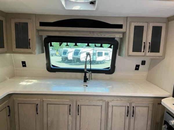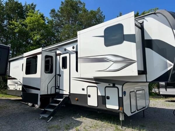 Luxury is not an option, it is a standard with each one of these Keystone RV Alpine fifth wheels! A 100" wide body construction, almost 7' tall slides, high ceilings, and panoramic frameless windows create an open, residential feeling. The Tru-Fit slide construction is more durable and minimizes motor structural stress, as well as resists leaking. Exclusive 12V color-coded wiring is different from conventional RV wiring in that it is easy to trace and clearly labeled to help savvy owners with DIY diagnosis/repair and helps dealer service techs troubleshoot/repair quickly which saves you time and money. The in-floor heat vents run straight through the unit and are typically positioned in low-traffic areas just like in your home for a more efficient air flow, plus it helps to keep the cabinet storage space. Come find your favorite model today!