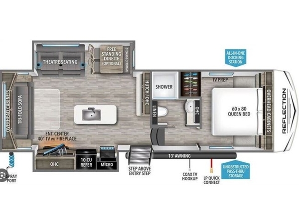 Outdoor Enjoyment: The exterior of the Reflection 100 28RL is designed for outdoor enjoyment, featuring a large electric awning, high-quality outdoor speakers, and ample storage compartments for your camping essentials. Embrace the beauty of nature while indulging in all the comforts of home.