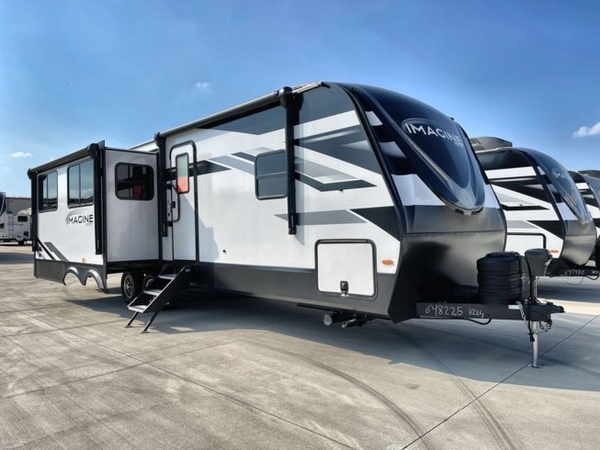 Imagine yourself camping in this Grand Design Imagine travel trailer model 2970RL. This rear living model offers sleeping for four, a convenient kitchen island, and so much more!