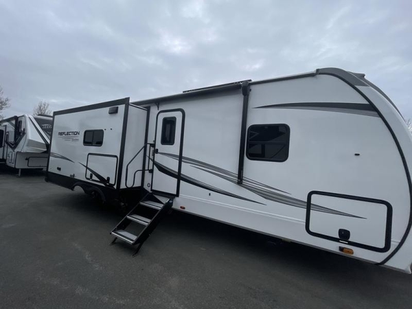 With any Reflection travel trailer by Grand Design, you will have a solar panel for off-grid camping and a 50 amp charge controller and inverter prep, a Universal All-In-One docking station, unobstructed pass-through storage, and nitrogen filled radial tires. Some other top features include the 30" stainless steel microwave, the maximum 7-foot headroom, and the ductless heating system with no vents in the floor to collect debris. Each is constructed of gel coat exterior sidewalls, residential 5" truss rafters, walk-on roof decking, a fiberglass and radiant foil roof and front cap insulation plus laminated aluminum framed side walls, roof and end walls in slide rooms. Choose luxury, value, and towability over all the others, take home a Reflection of your good taste!