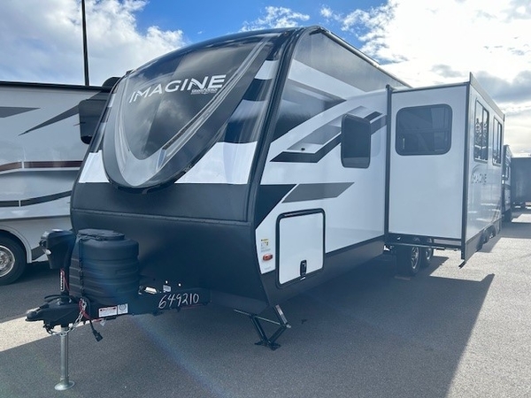 Just imagine leaving the world behind and secluding yourself away with your favorite people in your Grand Design Imagine travel trailer! The Imagine has been designed to enjoy extended season camping and includes a high-capacity furnace, a heated and enclosed underbelly with suspended tanks, a designated heat duct to the subfloor, and a high-density roof insulation with attic vent. You'll have maximum head room on the interior with 81" radius ceilings, and large panoramic windows to let in natural lighting. The exclusive drop-frame pass-through storage compartment is going to allow you to bring along lots of equipment, and the universal docking station is an all-in-one location for utilities and hook-ups. You'll also have industry-leading tank capacities so that you can fill and empty your tanks less often.