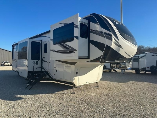 2024 Grand Design Solitude 380FL-RAt home, anywhere.If you're looking for more room, Solitude is the most spacious Extended Stay Fifth Wheel ever built. Taller ceilings, bigger cabinets, and a sweeping scenic window all make the Solitude a dream that you wake up to as long as you like.Features may include:ExteriorExterior Spray Port (Door Side)Front Cap WindshieldKing Jack AntennaHigh-Gloss Gel Coat Exterior SidewallsColor Matched Fender SkirtTPO Roof Covering w/ 18-Year WarrantySlam-Latch Baggage DoorsMagnetic Entry and Baggage Door CatchesEntry Door w/Privacy GlassFrameless Tinted WindowsPainted Gel Coat Fiberglass Front CapRoof Ladder17.5" Spare Tire (Undermount)Power Patio Awning with Integrated LED LightingSewer Hose Storage AreaEasy Clean Solid Surface StepsKeyed AlikeSolidStep Quad Entry Steps101" Widebody ConstructionMORryde® Pin BoxSlide-Out Selector ValvesInteriorDouble Tri-Fold Hide-A-Bed SofasLeaded Glass Cabinet Door Inserts (Select Areas)Under Step Shoe Storage (Most Models)Plywood Drawer BottomsPremium Roller ShadesHardwood Window TreatmentsCongoleum Flooring w/3-Year WarrantyHallway HandrailHardwood Cabinet DoorsSignature Wall Mounted Dinette Table w/4 Padded ChairsTheatre SeatingTri-Fold Hide-A-Bed SofaSmoke Detector, LP Alarm, Carbon Monoxide AlarmOversized Kitchen PantryLED Rope Lighting in PantryResidential Kitchen Faucet with Pullout SprayerReal Tile BacksplashHardwood Kitchen Light SoffitHutch with Flip-Top Hidden StorageWasher/Dryer PrepSolid Surface Countertops & Sink CoversStainless Steel Undermount Kitchen SinkProfessional Grade Stainless Steel Cooktop w/ Built-in OvenStainless Steel 12 Cu. Ft. 4-Door RefrigeratorMicrowaveResidential Style HeadboardUnder Bed Storage AreaIndividually Switched Reading Lights Over Bed60" x 80" Queen BedWindow Above Master Bed HeadboardPull-Out Ottoman at Bed BaseDresser w/ Flip-Top Hidden StorageNight Stands with USB PortsBedside 110-Volt Outlets (2)One-Piece Fiberglass Shower with Glass DoorPorcelain ToiletUndermount Lav Sink
