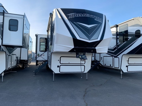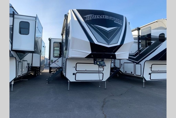 With any Momentum M-Class toy hauler by Grand Design, you will enjoy luxury at every turn! They have been constructed to a superior standard with a thermal roof design, triple insulated main floor and garage floor, and a Rail-Tite underbelly seal that will allow you to camp in all elements. Each model also features an 8' 5" wide body chassis with a wide rail design, no wheel wheels, and a dovetail entry for easier loading. The Stealth A/C system provides maximum cooling power, and the CRE3000 suspension system means you can enjoy a smooth tow each time. You will love the luxurious interior with a professional grade stainless steel cooktop, interior color changing LED accent lighting, a fiberglass shower with a glass door, and solid surface countertops.