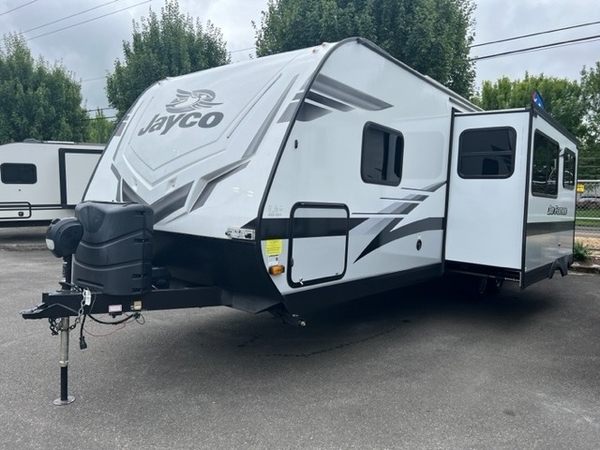 With any Jay Feather travel trailer by Jayco, you will experience an easy-to-tow, lightweight dual axle RV that is built on an American-made frame with an aerodynamic, rounded front profile with a diamond plate to protect against road debris, and includes Azdel composite in the perimeter walls, and Stronghold VBL vacuum-bonded, laminated floor and walls, plus the Magnum Truss roof system. Also included are features in the Customer Value package, and the Sport package which offers aluminum tread entry steps, roof-mount solar prep, an LED TV, and the Glacier package which includes an enclosed underbelly. The interior provides residential-style kitchen countertops with a decorative backsplash, residential plank-style vinyl flooring for easy care, a decorative wallboard for style, and ball-bearing drawer guides with 75 lb. capacity to mention a few of the amenities. Choose your favorite today!
