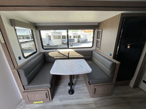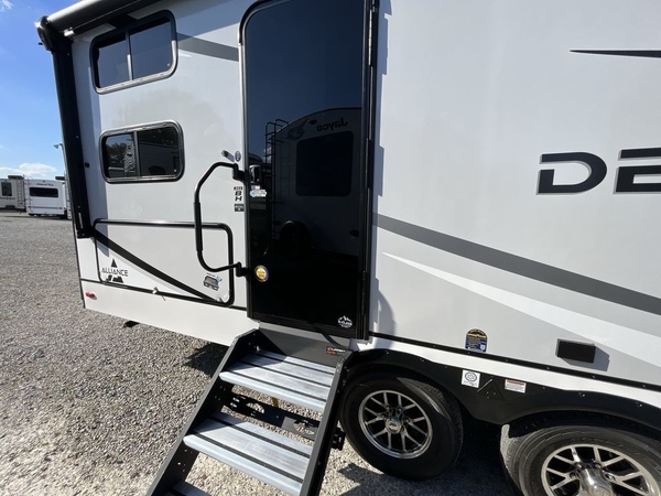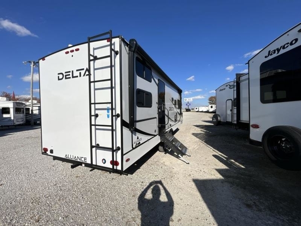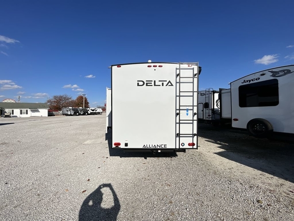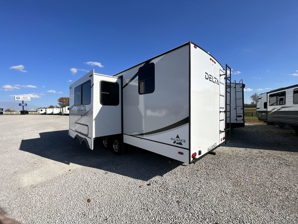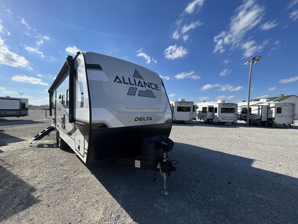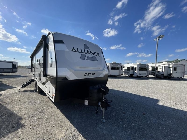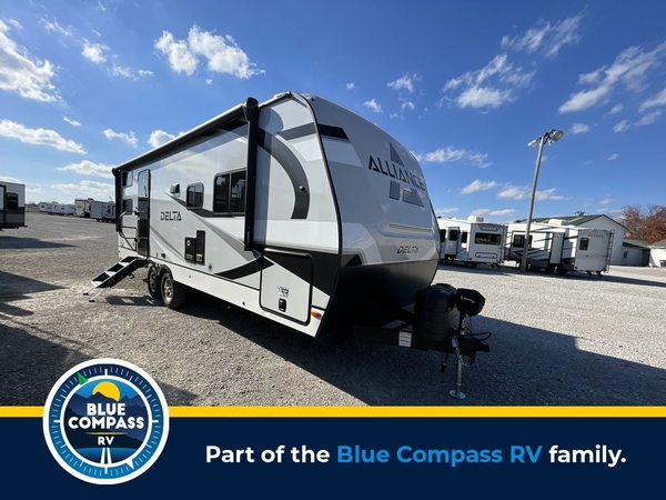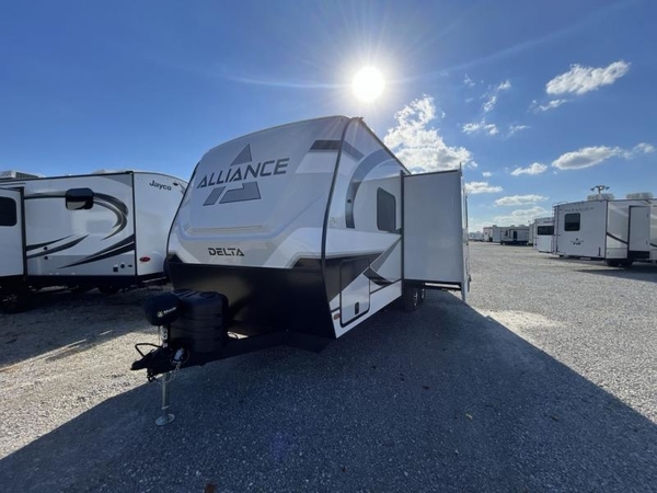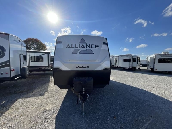 Form and function works together with everyone of these Alliance RV Delta travel trailers! They are built with a walk-on roof with a seamless PVC roof covering, Mylar reinforced exterior seals, and a heated and enclosed underbelly to protect your unit in all seasons. The commercial grade vinyl flooring will be easy to clean and the oversized atrium windows throughout let in plenty of natural sunlight. With 62 cu. ft. of drop frame pass-through storage, you can bring along all of your essential camping gear plus it has USB charging for more convenience. There are many at home interior conveniences including a Bluetooth speaker, USB charging throughout, and even a pull-out kitchen trash can. Come find your favorite model today!