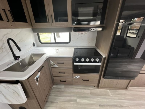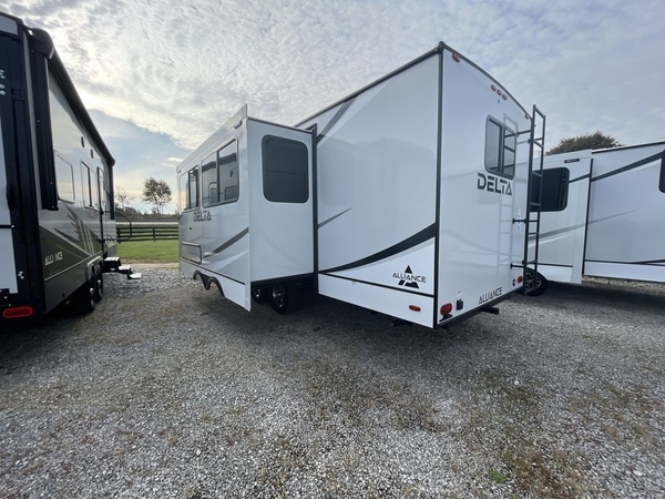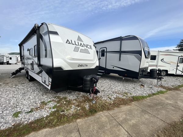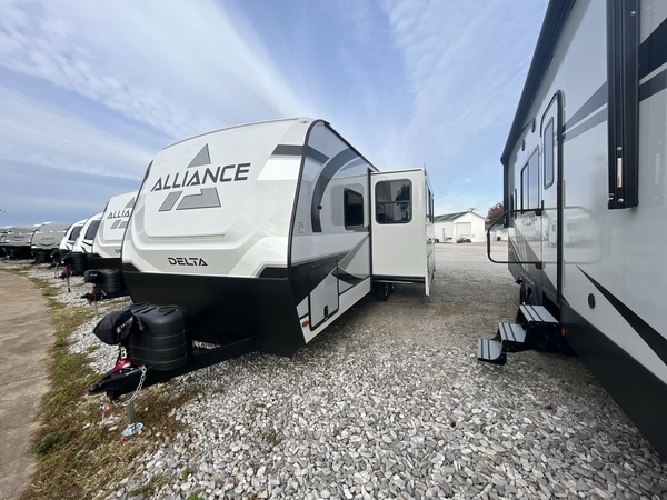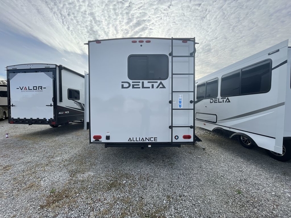 Form and function works together with everyone of these Alliance RV Delta travel trailers! They are built with a walk-on roof with a seamless PVC roof covering, Mylar reinforced exterior seals, and a heated and enclosed underbelly to protect your unit in all seasons. The commercial grade vinyl flooring will be easy to clean and the oversized atrium windows throughout let in plenty of natural sunlight. With 62 cu. ft. of drop frame pass-through storage, you can bring along all of your essential camping gear plus it has USB charging for more convenience. There are many at home interior conveniences including a Bluetooth speaker, USB charging throughout, and even a pull-out kitchen trash can. Come find your favorite model today!