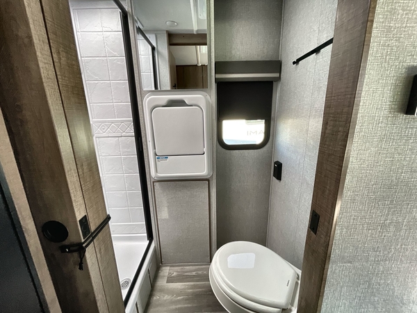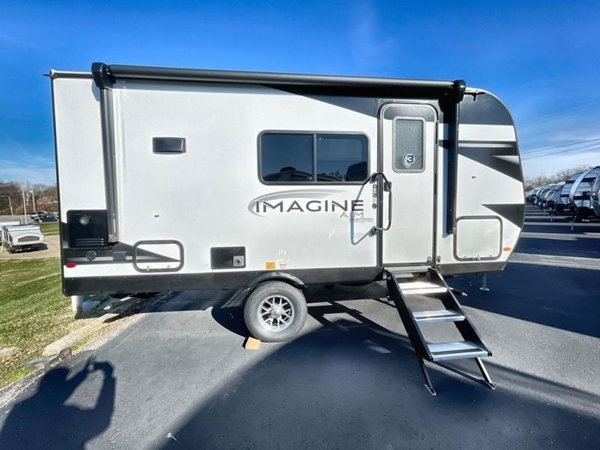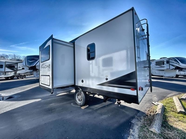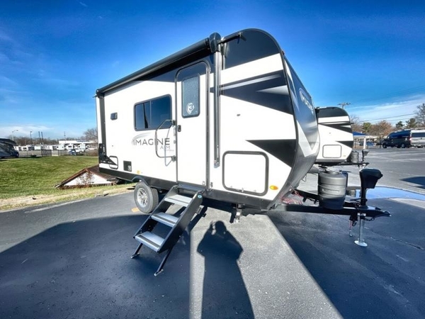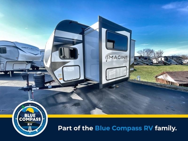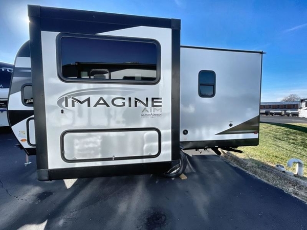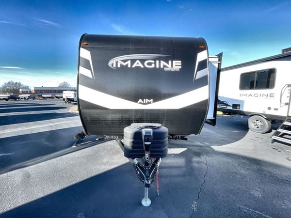Aim for new destinations in one of these Grand Design Imagine AIM travel trailers! They are constructed to a superior standard with the 4-Seasons Protection Package that features a heated and enclosed underbelly with suspended tanks, a moisture barrier floor enclosure, a double insulated roof and front wall, and more. There is backup camera prep outside, along with a universal docking station, a power tongue jack, and durable Tuff-Ply pass-thru flooring for your camp gear. You are sure to feel at home with residential cabinetry, premium window treatments, residential countertops, and a spacious walk-in shower to name a few comforts. The on-demand tankless water heater is a feature you won't want to camp without and the hi-definition LED TV will ensure you'll never go bored on rainy days. Each model also comes with four AIM packages; the Peace of Mind Package, The Ultimate Power Package, The 4-Season Protection Package, and the Solar Package!