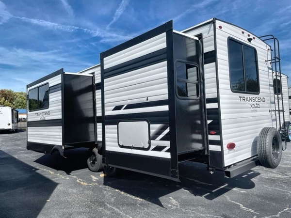 The customer-focused, quality-built Transcend Xplor travel trailers by Grand Design are your ticket to fun and adventure. The upgraded Strongwall metal exterior will hold up through the years, and the heated and enclosed underbelly means you can camp in all seasons. You will appreciate the power tongue jack when it comes time to set up, as well as the all-in-one utility center and the detachable power cord with an LED light. These models include many outlets throughout, USB ports to charge your gadgets, and an AM/FM/Bluetooth stereo with exterior speakers to keep you entertained. The interior of the Transcend Xplor will have you feeling right at home with upgraded residential furniture, a large, solid bedroom door, and residential countertops, and the list goes on!