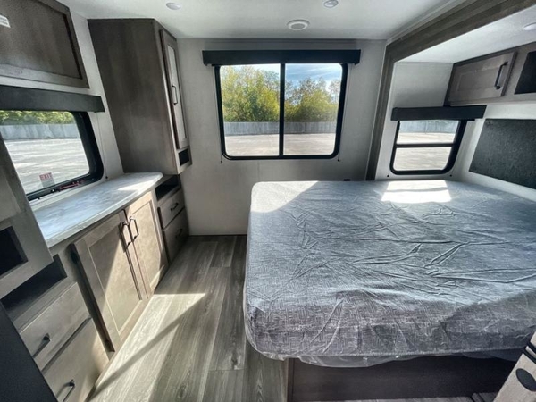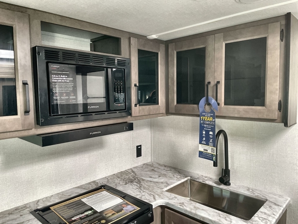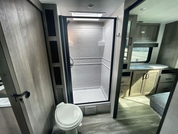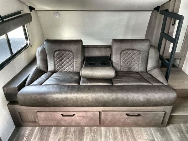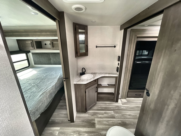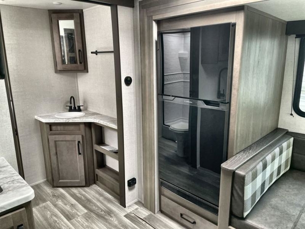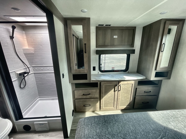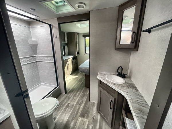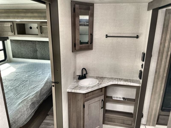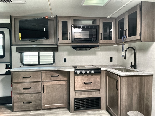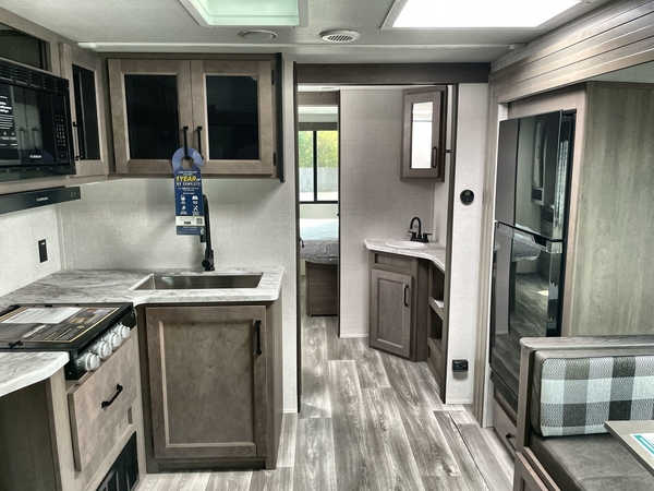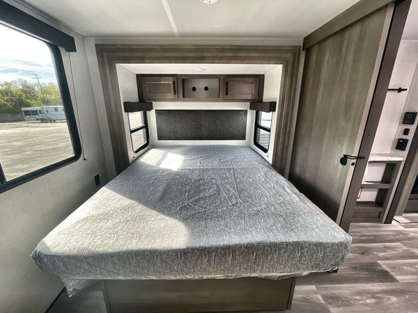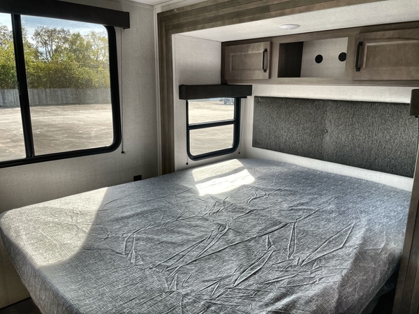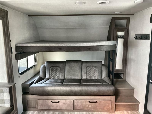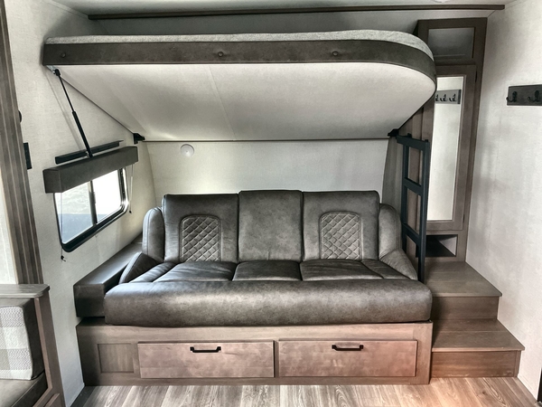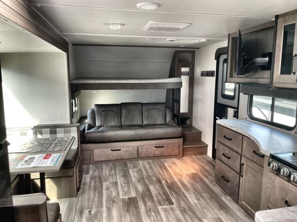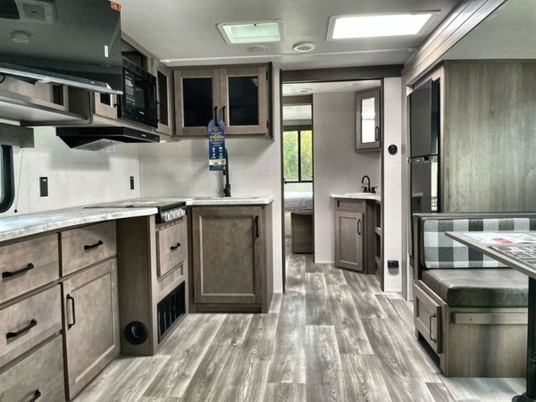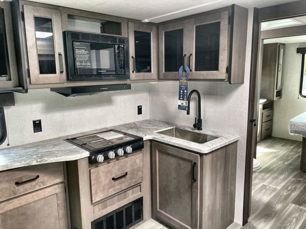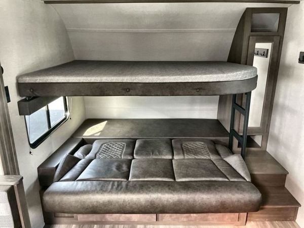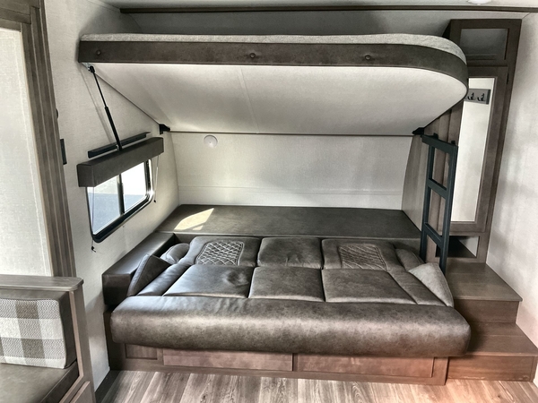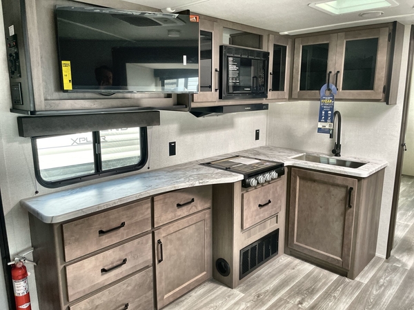 Get ready to Xplor the great outdoors in this cozy travel trailer! Once you arrive at the campground, set up the 17' power awning and enjoy a cold drink before unpacking your bags. If you get hungry, the chef of your group can prepare lunch on the three-burner cooktop, and you can enjoy it around the U-shaped dinette. You can also choose the optional theater seats in place of the dinette if you're not needing the additional dining or sleeping space. This model includes a double-size flip-up top bunk and a bottom sofa/double-size bunk for plenty of space to sit and and sleep, plus there is a rear master suite with a slide-out queen bed for you. The walk-through bath is convenient for everyone, and you'll enjoy a walk-in shower here plus a linen closet to store clean towels.