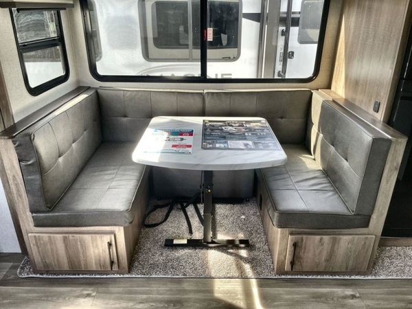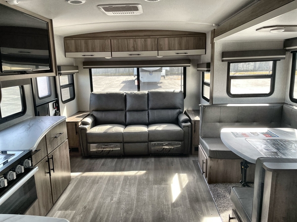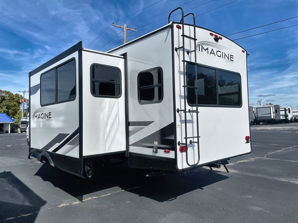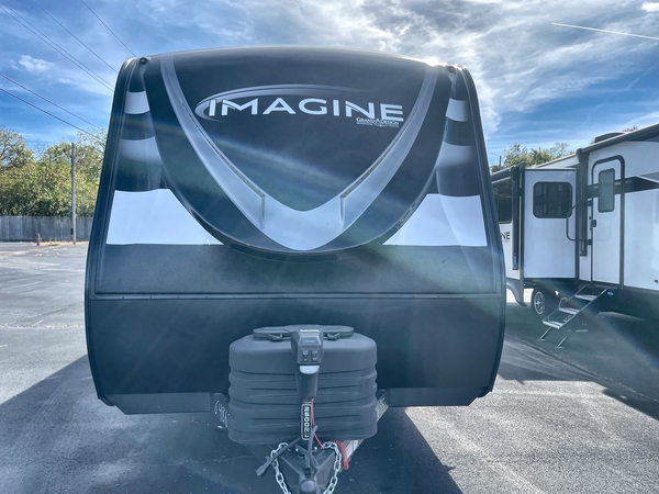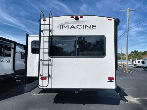 Just imagine leaving the world behind and secluding yourself away with your favorite people in your Grand Design Imagine travel trailer! The Imagine has been designed to enjoy extended season camping and includes a high-capacity furnace, a heated and enclosed underbelly with suspended tanks, a designated heat duct to the subfloor, and a high-density roof insulation with attic vent. You'll have maximum head room on the interior with 81" radius ceilings, and large panoramic windows to let in natural lighting. The exclusive drop-frame pass-through storage compartment is going to allow you to bring along lots of equipment, and the universal docking station is an all-in-one location for utilities and hook-ups. You'll also have industry-leading tank capacities so that you can fill and empty your tanks less often.
