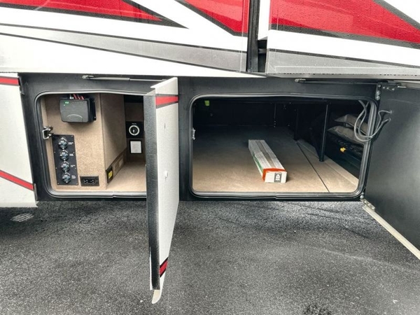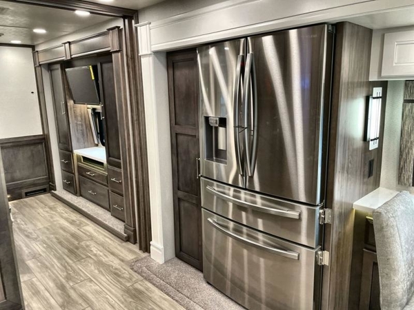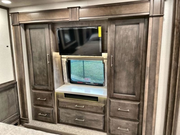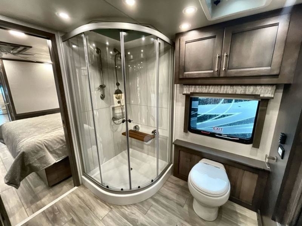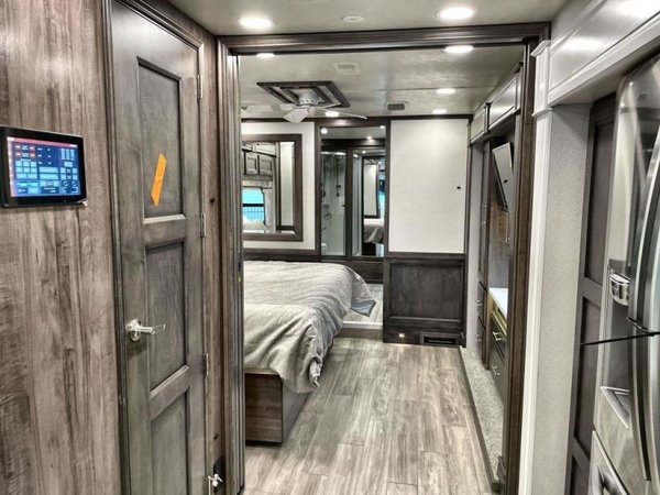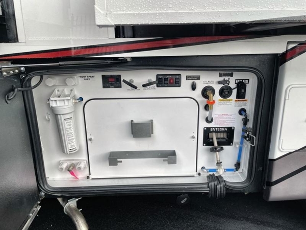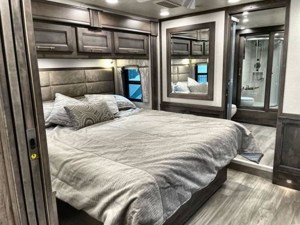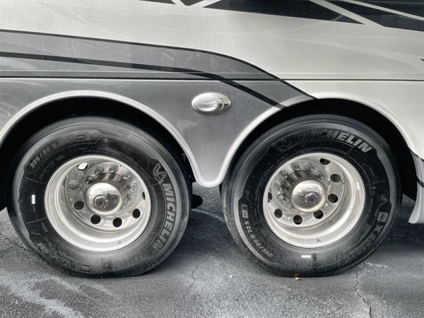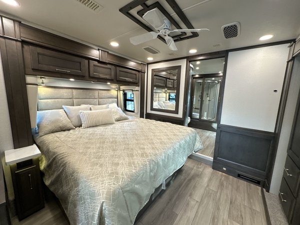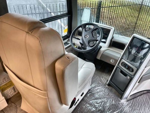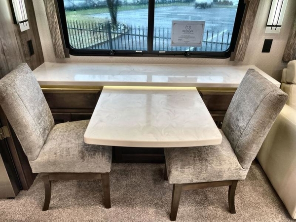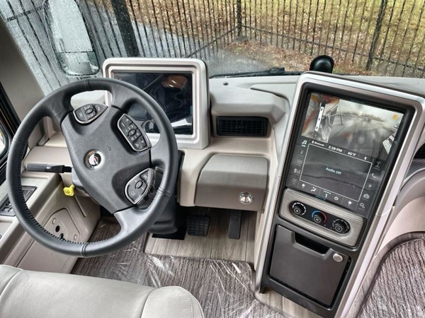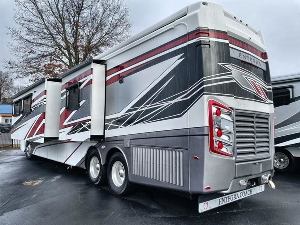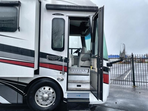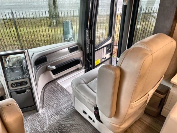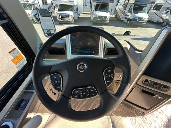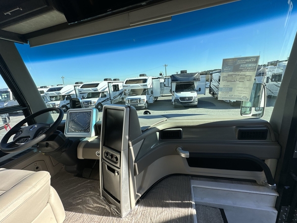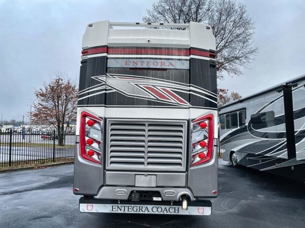 With any Aspire Class A diesel motorhome by Entegra Coach you will enjoy a smooth ride thanks to the Spartan K2 raised-rail chassis, the independent front suspension, and the E-Z Steer adjustable power steering assist. The leather captain's seats include 6-way power adjustment, lumbar and footrest functions that will have you sitting in the lap of luxury, plus there is a Valid Truline air leveling system with auxiliary air compressor for a smooth ride and easy set up. You'll find many high-end features inside, including a Teakwood shower seat in the bath, a decorative ceiling feature, solid surface countertops with dimmable LED accent lighting, and premium Crown Compass furniture. The Aspire also features exterior amenities that will make being on the road easier than ever. The push-button, power-unlatching baggage doors let you unload in record-time, and the Girard awnings will provide tons of shade to relax outdoors. There are also two 200W solar panels, a Winegard WiFi Range Wi-Fi extender, a heated utility center, and much more!