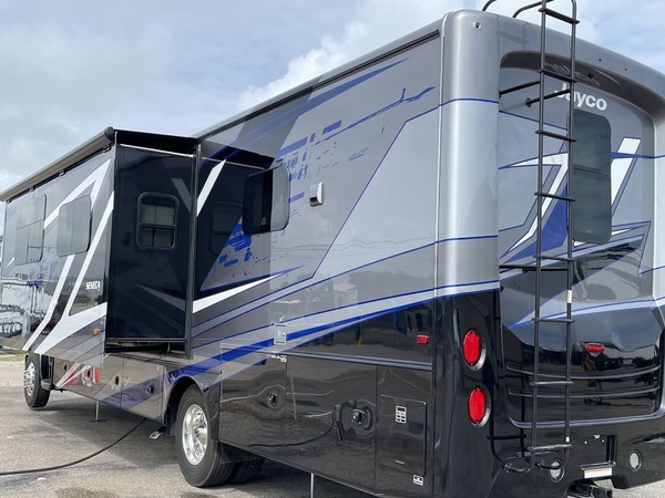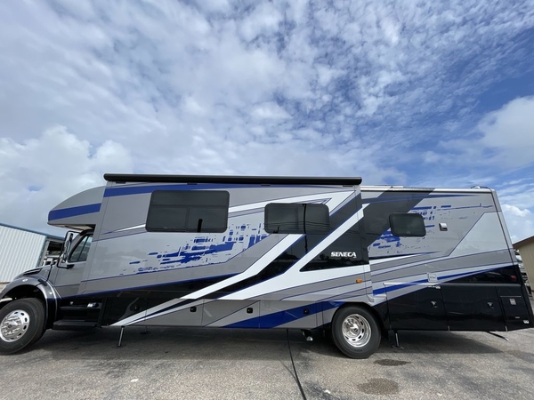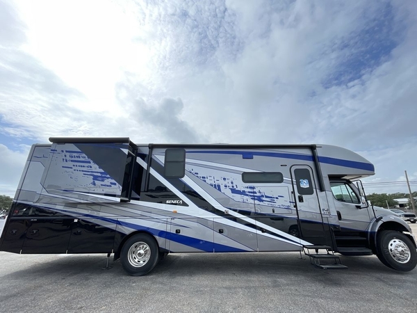 Experience comfort and space with each one of these Jayco Seneca Class C diesel motorhomes! The unique front end diesel Freightliner S2RV chassis won't cramp the cabin, and the superior towing power allows you to tow a toy or car while keeping it at a lower weight point. You will find that these models are built sturdy with a powerful blend of precise handling and renowned stability with features like the StrongholdVBL lamination, the JRide Premium system, and the one-peice, seamless, fiberglass roof that will withstand all of your adventures. The Firefly total coach control system simplifies your camping experience with the ability to monitor and control key RV features in the palm of your hand on your phone or tablet. Come find the right model that meets your needs today!
