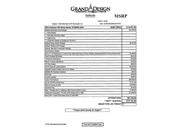 Prepare to elevate your RV lifestyle to the highest level of luxury and comfort with the 2024 Grand Design Solitude 390RK. This fifth wheel redefines spacious living, modern amenities, and relaxation on the road. Whether you're a seasoned RVer or new to the fifth wheel experience, the Solitude 390RK is designed to provide you with an unparalleled and opulent travel experience.