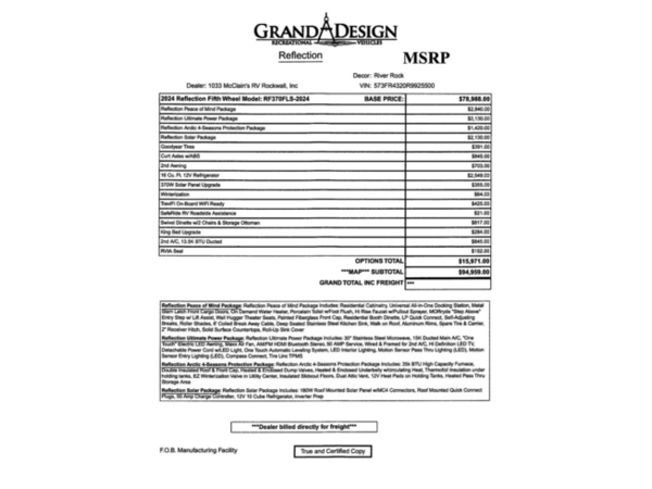 Each Reflection fifth wheel and travel trailer by Grand Design is packed with luxury features for an overall better camping experience! The MORryde 3000CRE suspension provides smooth towing to your destination and the durable construction materials mean you can enjoy your RV for years to come. These units include the Arctic 4-Seasons Protection Package that will extend your camping season thanks to the extreme temperature testing and maximum heating power. You will also appreciate the Solar Package that will allow you to do some off-grid camping and the Compass Connect system so you can control your RV's functions right from the palm of your hand. The interior of these travel trailers and fifth wheels are designed to make you feel at home with residential cabinetry, solid surface countertops, blackout roller shades, a spacious shower with a glass door, residential bedrooms, and the list goes on! Choose a Reflection today and start a new adventure tomorrow!