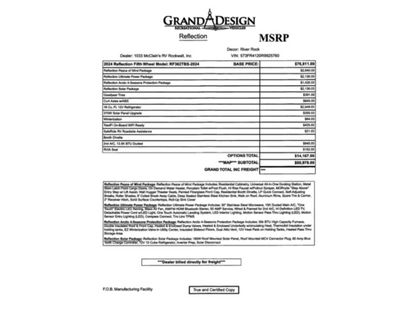 In summary, the 2024 Grand Design Reflection 362TBS is a top-tier fifth-wheel RV that offers spacious living, family-friendly features, and high-quality amenities. It's a perfect choice for families, groups of friends, or anyone seeking a comfortable and luxurious home on wheels for their adventures on the road.
