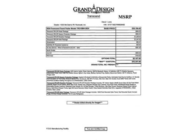 With its durable construction and top-notch craftsmanship, you can trust that this Transcend Xplor will be your trusted companion for many years to come. Don't miss out on the opportunity to own this remarkable 2024 Grand Design Transcend Xplor 315BH Travel Trailer. Whether you're planning a weekend getaway or a cross-country adventure, this RV has everything you need to make your journey unforgettable. So, why wait? Start making memories today and hit the road in style with this exceptional travel trailer!