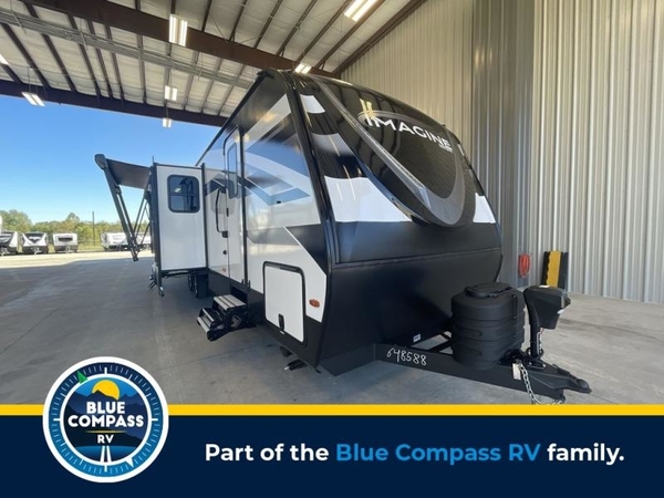 Just imagine leaving the world behind and secluding yourself away with your favorite people in your Grand Design Imagine travel trailer! The Imagine has been designed to enjoy extended season camping and includes a high-capacity furnace, a heated and enclosed underbelly with suspended tanks, a designated heat duct to the subfloor, and a high-density roof insulation with attic vent. You'll have maximum head room on the interior with 81" radius ceilings, and large panoramic windows to let in natural lighting. The exclusive drop-frame pass-through storage compartment is going to allow you to bring along lots of equipment, and the universal docking station is an all-in-one location for utilities and hook-ups. You'll also have industry-leading tank capacities so that you can fill and empty your tanks less often.