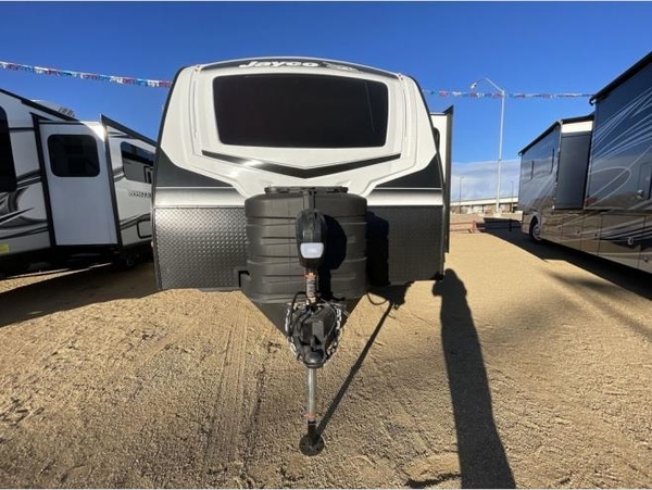 The lightweight White Hawk travel trailers by Jayco will blow you away with their roomy interiors, luxurious amenities, and durable construction. The Magnum Truss Roof System can withstand 50% more weight than the competition, and the Stronghold VBL lamination is the lightest, yet strongest in the industry. Each model includes American-made Goodyear tires with self-adjusting brakes, dark tinted, frameless safety glass windows, and modern graphics package with dual-colored sidewalls for a sleek look. The White Hawk travel trailers also include a barreled interior ceiling with up to 81" of interior height, an electric fireplace, decorative kitchen backsplash, plus many more interior comforts!