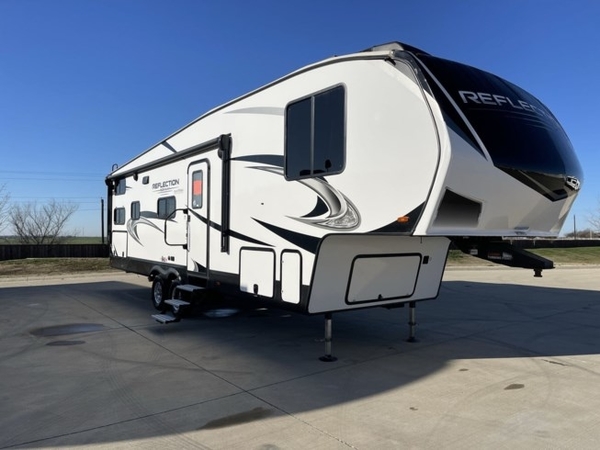 Inside, the Reflection 150 278BH offers a comfortable and inviting living space. The rear bunkhouse is a standout feature, providing ample sleeping accommodations with double-size bunks and a convertible dinette, perfect for accommodating children or guests. The centrally located kitchen is equipped with modern appliances, including a three-burner stove, oven, microwave, and refrigerator, making meal preparation convenient and enjoyable. The spacious U-shaped dinette and sofa provide additional seating and sleeping options, while the private front bedroom offers a peaceful retreat with a queen-size bed and overhead storage. With its thoughtful design and abundance of amenities, the 2022 Grand Design Reflection 150 278BH is sure to enhance any camping experience.