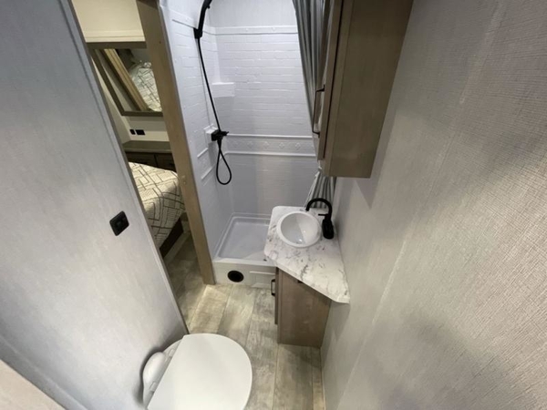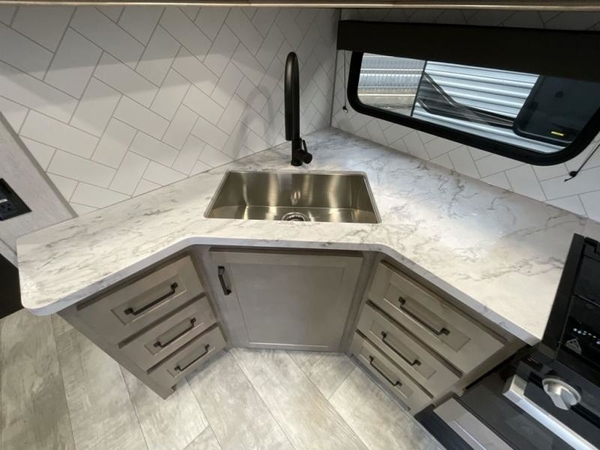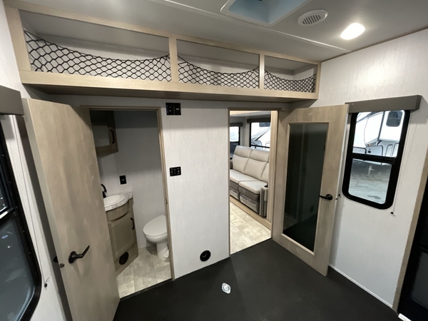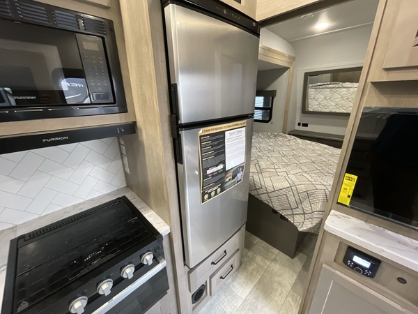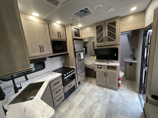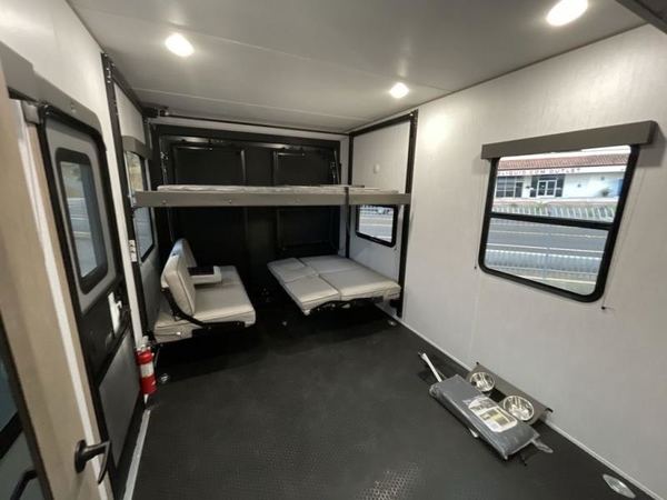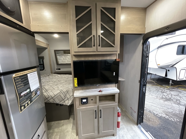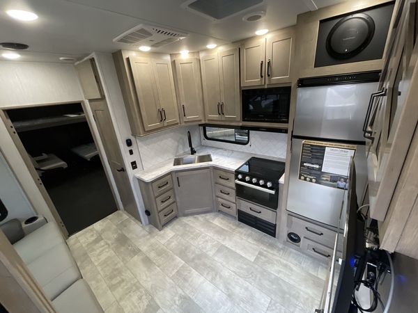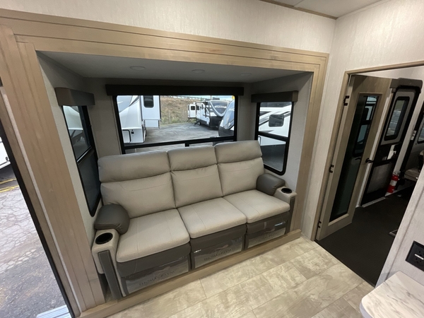 Are you looking for adventure and fun? The Momentum G-Class toy hauler by Grand Design will help you find it! You can explore during any season you choose with the Insulation Package that includes a heated and enclosed underbelly with suspended tanks, a high-capacity furnace, a moisture barrier floor enclosure, and cabinet-mounted heat ducts. Each model includes a 30-gallon fuel station with an interior and exterior gauge, a dovetail rear rend, and 2,500-LB tie-downs anchored into the chassis. Throughout the Momentum G-Class interior, you'll enjoy many comfortable features like large panoramic windows, a shower skylight, USB chargers in the bedroom, and residential cabinetry.