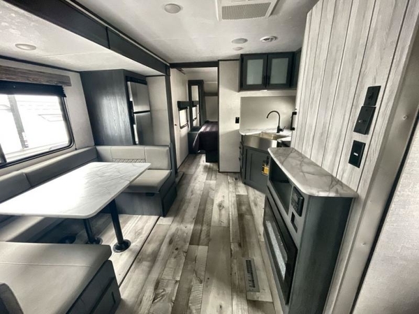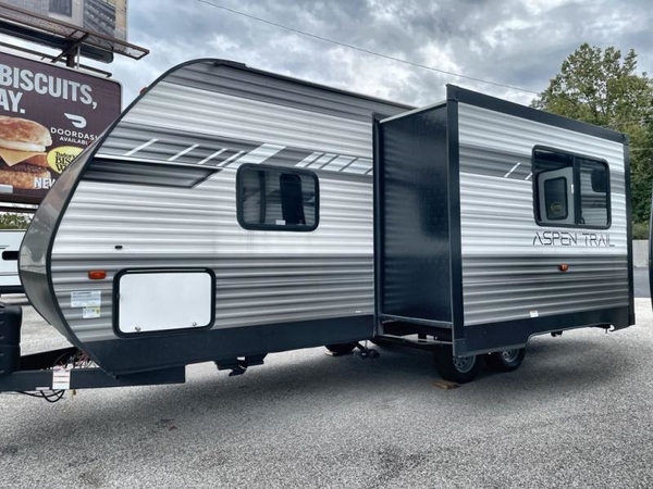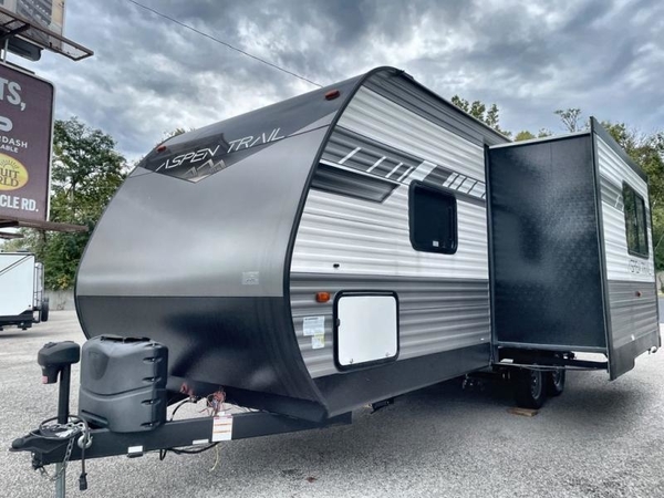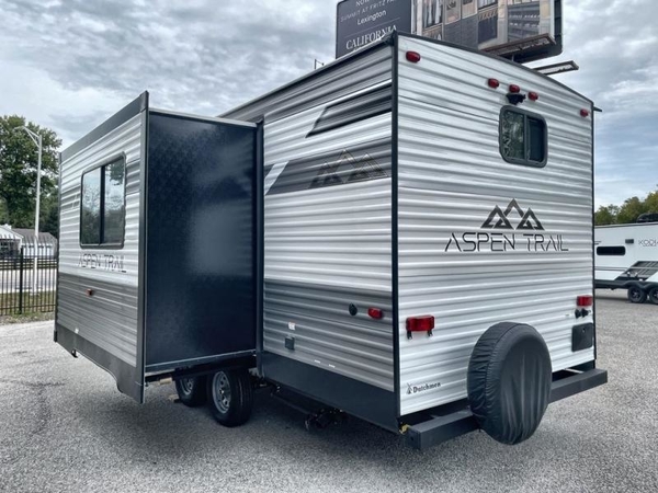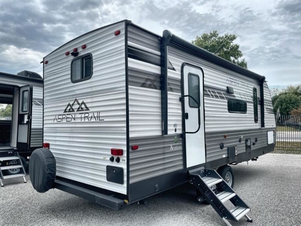 You will find more standard features and more value in each one of these Dutchmen RV Aspen Trail travel trailers! The aerodynamic front profile not only makes them easier to tow, but also more fuel efficient. Experience all of the power with power stabilizers, a power awning, and a power tongue jack for easy setting up and breaking down. The fully enclosed underbelly provides an extra layer of protection for your unit's vitals so you can camp further into the year. With aluminum steps, you will have a solid platform of stability as you enter and exit, plus they are easy to expand or store away. The backup camera prep offers peace of mind as you navigate your unit and the upgraded Beauflor lino throughout will be easy to clean so you don't have to worry about mud getting tracked inside. Come find the one that best suits your needs today!