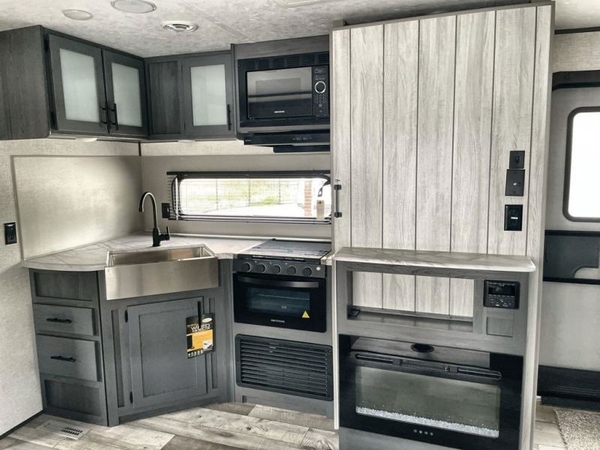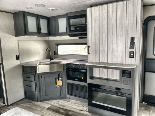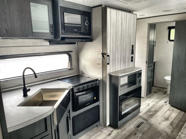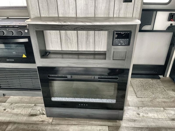 Head out on a weekend getaway with your spouse in this Aspen Trail travel trailer! You will enjoy a good night's rest each night on the queen-size bed in the front private bedroom. The U-shaped dinette is not only a great place to eat your meals at, but also to play games at while you enjoy the fireplace across from it. The full rear bathroom has everything you will need to start the day feeling fresh, including an exhaust fan to eliminate the steam from your nice, hot shower. No need to worry about where you will store all of your outdoor camping gear either because the pass-through storage area has you covered!
