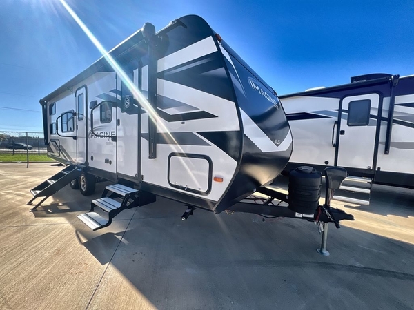 Let your imagination run wild with the possibilities that the Grand Design Imagine XLS travel trailer can provide! The Imagine XLS has been built with oversized tank capacities, an extra-large 2" fresh water drain valve, a ducted A/C system, a power tongue jack, and a heated and enclosed underbelly with suspended tanks. There is a designated heat duct to the subfloor and a residential ductless heating system throughout. For outdoor adventures, the electric awning with LED lights will enable you to stay protected, and the exterior speakers make any time outside a party. You will also love the XLS Solar Package that comes with a 165W roof mounted solar panel, a 40 Amp charge controller, a 12V 10 cu. ft. refrigerator, and roof mounted quick connect plugs!