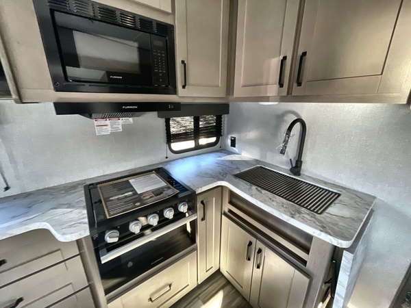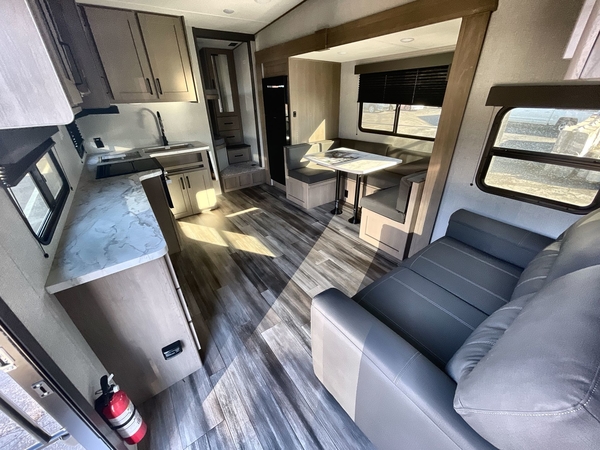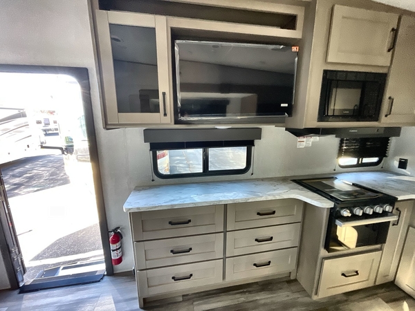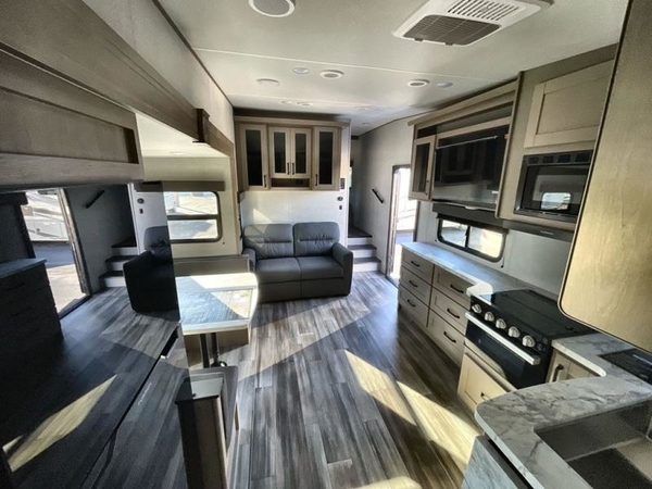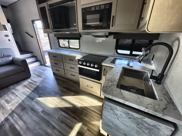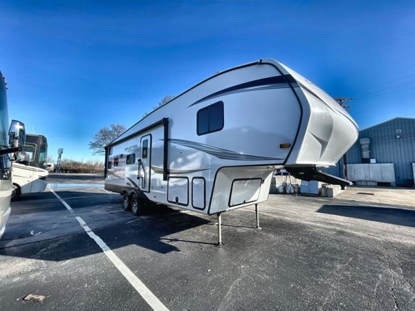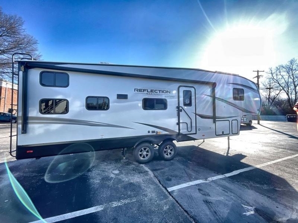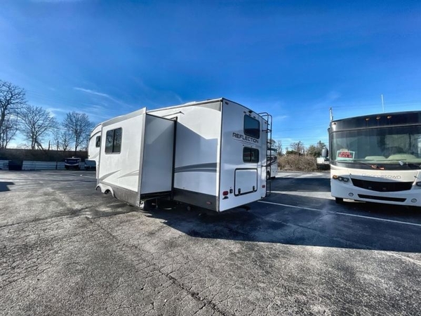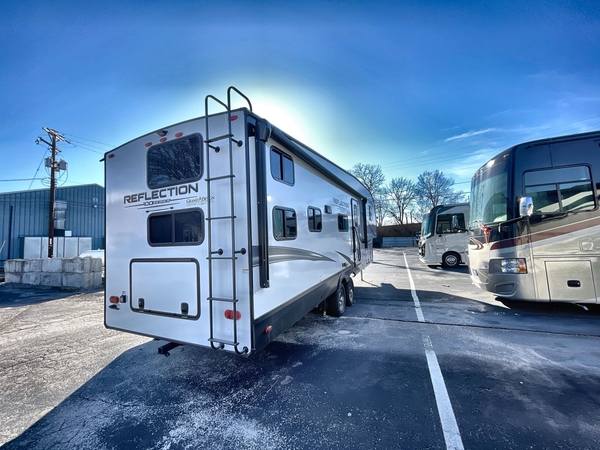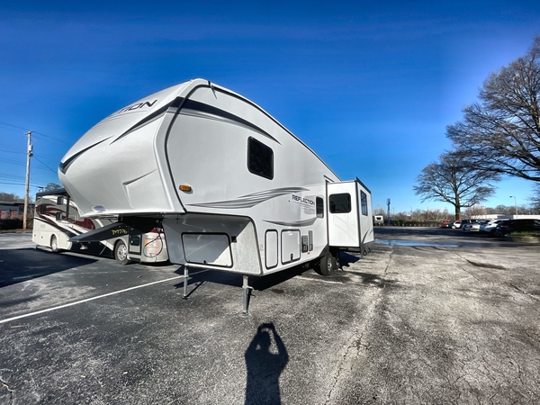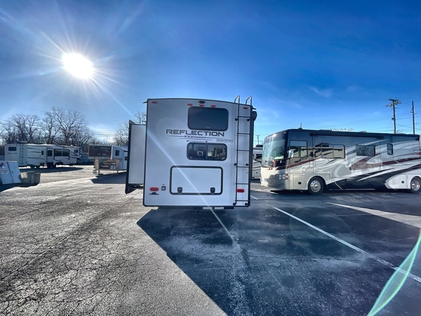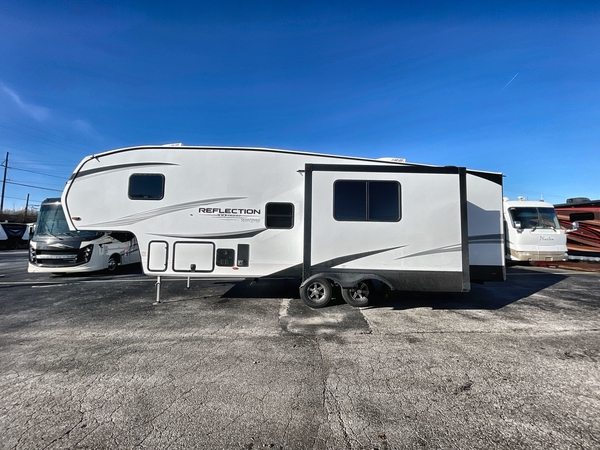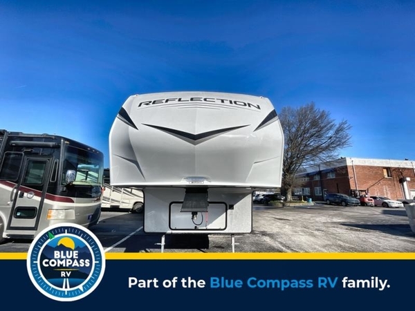 Each Reflection 100 Series fifth wheel by Grand Design is affordable and packed with luxury for unforgettable camping memories! The MorRyde CRE3000 suspension system, Goodyear Endurance tires, and aerodynamic front cap with Max Turn radius will provide smooth towing from home to campground. And the solar package with a 180W/370W solar panel, 50 Amp charge controller and 12V refrigerator will allow you to camp for longer periods of time and in more locations! A heated and enclosed underbelly with circulating heat is included in the Arctic 4-Seasons Protection Package, along with 12V heat pads on all holding tanks, and a double insulated roof and front cap so you can camp all year long if you choose. You will appreciate having an on-demand water heater for hot showers after exploring, and the universal all-in-one docking station will let you monitor your RVs tanks levels and functions with ease. These models also include many luxurious interior features, such as premium Congoleum flooring, blackout roller shades, residential cabinetry, and matte black fixtures and hardware. Don't let the Reflection 100 Series fifth wheels pass you by!