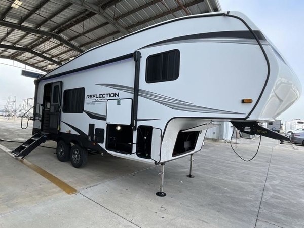 Each Reflection 100 Series fifth wheel by Grand Design is affordable and packed with luxury for unforgettable camping memories! The MorRyde CRE3000 suspension system, Goodyear Endurance tires, and aerodynamic front cap with Max Turn radius will provide smooth towing from home to campground. And the solar package with a 180W/370W solar panel, 50 Amp charge controller and 12V refrigerator will allow you to camp for longer periods of time and in more locations! A heated and enclosed underbelly with circulating heat is included in the Arctic 4-Seasons Protection Package, along with 12V heat pads on all holding tanks, and a double insulated roof and front cap so you can camp all year long if you choose. You will appreciate having an on-demand water heater for hot showers after exploring, and the universal all-in-one docking station will let you monitor your RVs tanks levels and functions with ease. These models also include many luxurious interior features, such as premium Congoleum flooring, blackout roller shades, residential cabinetry, and matte black fixtures and hardware. Don't let the Reflection 100 Series fifth wheels pass you by!