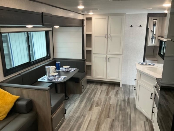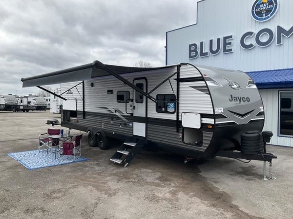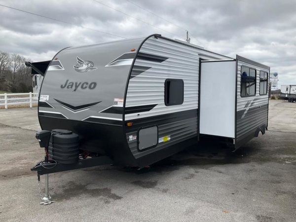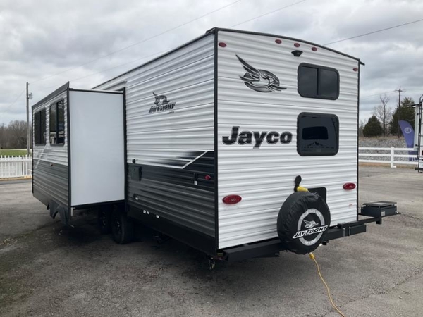 These Jayco Jay Flight travel trailers have been a family favorite for years with their lasting power and superior construction. An integrated A-frame and magnum truss roof system holds them together. When you tow one of these units you're towing the entire unit and not just the frame. With dark tinted windows, you have more privacy and safety. The vinyl flooring throughout will be easy to clean and maintain too. Come find your favorite model today!