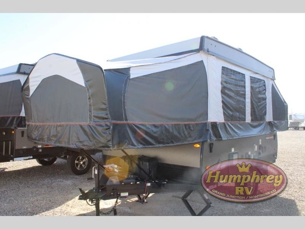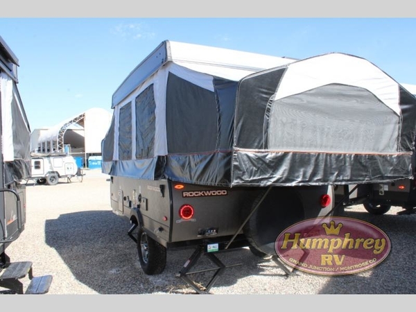The Rockwood Extreme Sports (ESP) pop-up campers by Forest River let you enjoy your adventures without the hassle! There are aluminum wheels with 15" Mud Rover tires for better ground clearance, a power roof lift for easy set up, plus durable Vinolon supreme tent material. Within the Extreme Package, you'll also find a 200W roof mount solar panel with a 1000W inverter, an outside griddle, a Create-A-Breeze roof vent fan, and many more convenient features. The Autumn Wood interior and wood plank flooring will make your space feel more like home, plus there are LED ceiling lights, residential style cabinet doors, and smoked vinyl windows. A Bluetooth stereo with outside speakers also comes standard, along with diamond plate accents, an exterior patio light, A/C roof bracing, and more!
