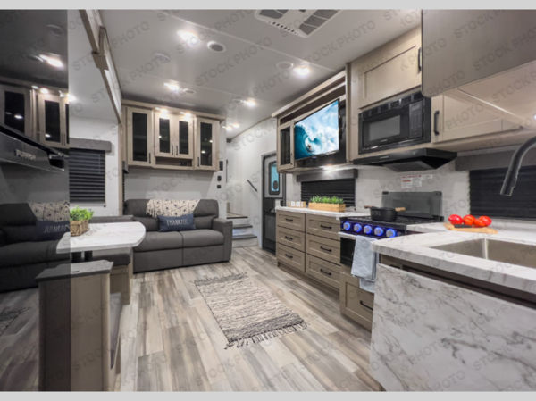 Each Reflection 100 Series fifth wheel by Grand Design is affordable and packed with luxury for unforgettable camping memories! The MorRyde CRE3000 suspension system, Goodyear Endurance tires, and aerodynamic front cap with Max Turn radius will provide smooth towing from home to campground. And the solar package with a 180W/370W solar panel, 50 Amp charge controller and 12V refrigerator will allow you to camp for longer periods of time and in more locations! A heated and enclosed underbelly with circulating heat is included in the Arctic 4-Seasons Protection Package, along with 12V heat pads on all holding tanks, and a double insulated roof and front cap so you can camp all year long if you choose. You will appreciate having an on-demand water heater for hot showers after exploring, and the universal all-in-one docking station will let you monitor your RVs tanks levels and functions with ease. These models also include many luxurious interior features, such as premium Congoleum flooring, blackout roller shades, residential cabinetry, and matte black fixtures and hardware. Don't let the Reflection 100 Series fifth wheels pass you by!