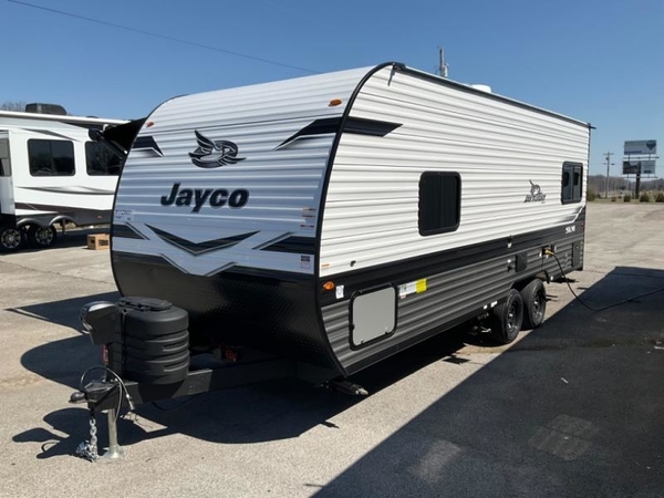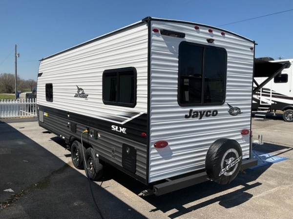 The Jayco Jay Flight SLX travel trailer is quite easy to own because it is lightweight, and it comes with a single axle. Built on a fully integrated A-frame with galvanized-steel, impact-resistant wheel wells, the Jay Flight SLX has quality at its very foundation. That quality continues on to the electric self-adjusting brakes, easy-lube hubs, Magnum Truss roof system, and LP quick connect. Some of what the mandatory Customer Value Package includes backup camera prep, Keyed-Alike entry and baggage doors, marine grade exterior speakers, and an on-demand tankless water heater. The optional STX Edition for Indiana built units only and the optional Baja Package built for Idaho unit only includes Goodyear off-road tires, an enclosed underbelly, a deluxe graphics package, and a wide-stance axle to name a few features.