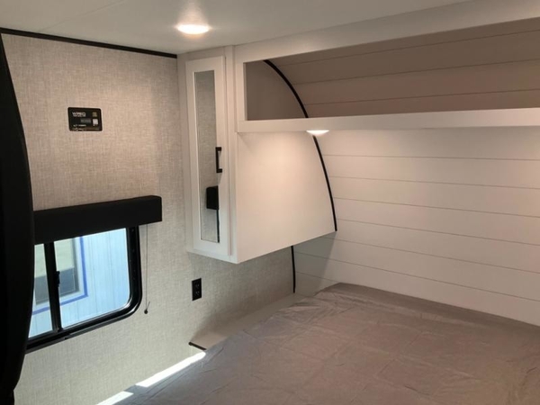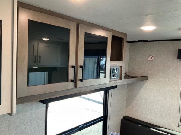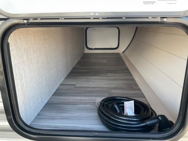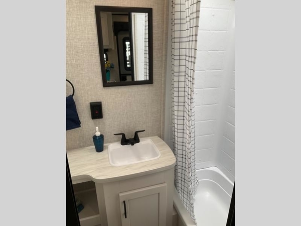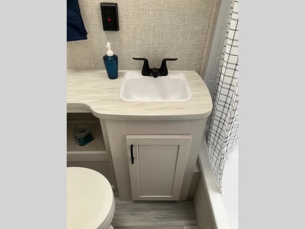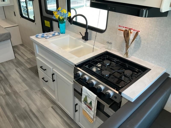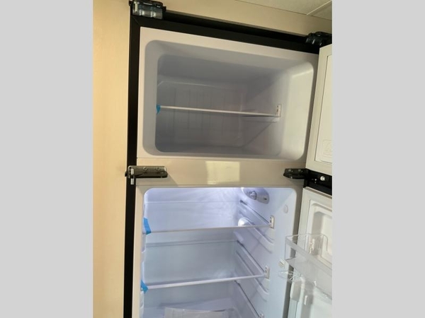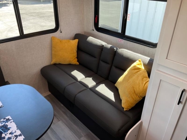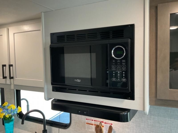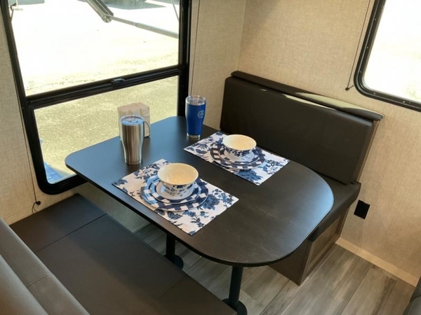 Camping in the woods is just what the doctor ordered and this trailer will provide all the interior comforts you need! There is a three burner cooktop and a microwave oven to prepare meals each day, plus an 8 cu. ft. 12V refrigerator for cold items. After your meal is made, you can dine at the booth dinette or relax on the jack-knife sofa, and these areas can become sleeping space for two to three guests at night. The full bath with a tub/shower means you won't have to use the camp's facilities and the 16' power awning will provide protection from the sun as you visit with other campers!