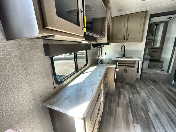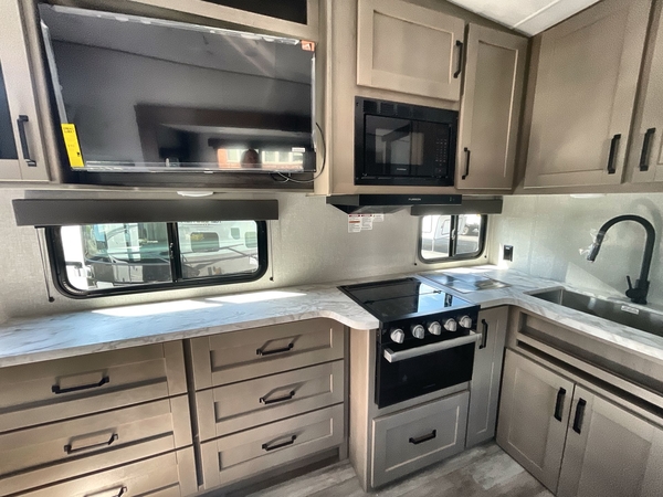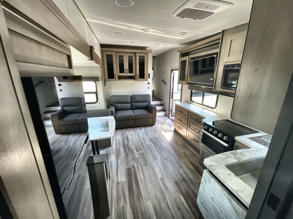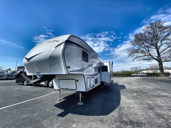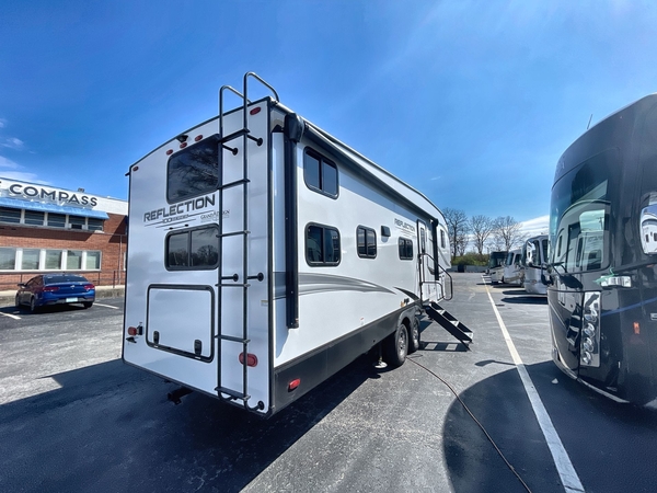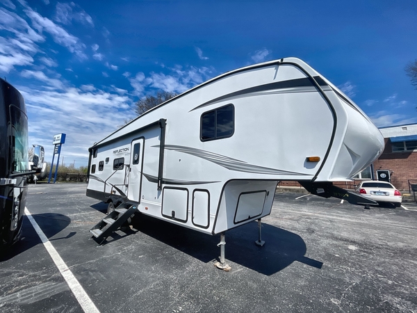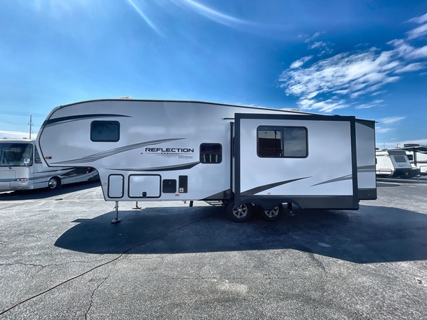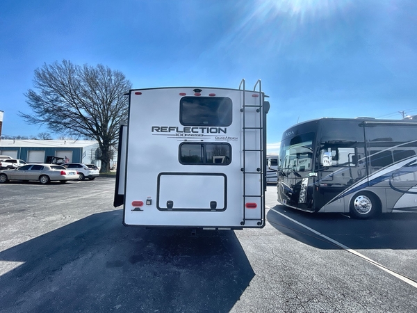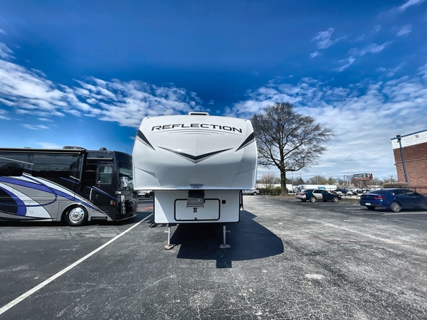 Each Reflection 100 Series fifth wheel by Grand Design is affordable and packed with luxury for unforgettable camping memories! The MorRyde CRE3000 suspension system, Goodyear Endurance tires, and aerodynamic front cap with Max Turn radius will provide smooth towing from home to campground. And the solar package with a 180W/370W solar panel, 50 Amp charge controller and 12V refrigerator will allow you to camp for longer periods of time and in more locations! A heated and enclosed underbelly with circulating heat is included in the Arctic 4-Seasons Protection Package, along with 12V heat pads on all holding tanks, and a double insulated roof and front cap so you can camp all year long if you choose. You will appreciate having an on-demand water heater for hot showers after exploring, and the universal all-in-one docking station will let you monitor your RVs tanks levels and functions with ease. These models also include many luxurious interior features, such as premium Congoleum flooring, blackout roller shades, residential cabinetry, and matte black fixtures and hardware. Don't let the Reflection 100 Series fifth wheels pass you by!