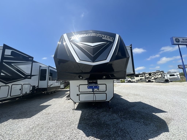 The Momentum fifth wheel toy haulers by Grand Design are built for four seasons of travel with your off-road toys and include luxurious accommodations throughout for extreme living! Each is constructed to a superior standard with the thermal roof design, the full-laminated walls, and the triple insulated garage floor. The MORryde CRE3000 suspension system and rubber pin box, plus the upgraded axle hangers provide the performance and smooth towing you desire, while the interior offers luxury such as color changing LED accent lighting, raised panel hardwood cabinet doors with hidden hinges, and a central vacuum system. Each toy hauler also includes four packages, including the Garage Package with Tuff-Ply gas and oil resistant flooring, the Weather-Tek Package with a Stealth AC System, and the Interior Luxury Package with solid surface countertops!