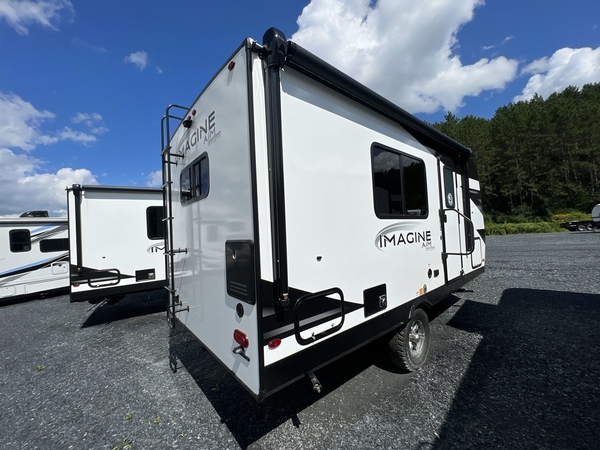 Aim for new destinations in one of these Grand Design Imagine AIM travel trailers! They are constructed to a superior standard with the 4-Seasons Protection Package that features a heated and enclosed underbelly with suspended tanks, a moisture barrier floor enclosure, a double insulated roof and front wall, and more. There is backup camera prep outside, along with a universal docking station, a power tongue jack, and durable Tuff-Ply pass-thru flooring for your camp gear. You are sure to feel at home with residential cabinetry, premium window treatments, residential countertops, and a spacious walk-in shower to name a few comforts. The on-demand tankless water heater is a feature you won't want to camp without and the hi-definition LED TV will ensure you'll never go bored on rainy days. Each model also comes with four AIM packages; the Peace of Mind Package, The Ultimate Power Package, The 4-Season Protection Package, and the Solar Package!
